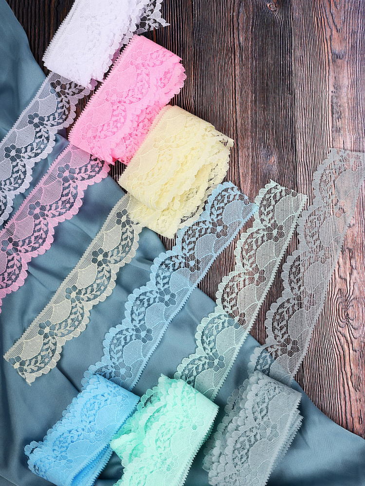 Очень красивое и нежное кружево-трикотаж от бренда Kruzhevo. Большая палитра оттенков, различная ширина и разнообразные рисунки. Кружево-трикотаж можно использовать для разных сфер дизайна — отделки нижнего белья, халатов, маек, повседневной и праздничной одежды, изготовлении аксессуаров. Кружево не эластичное!