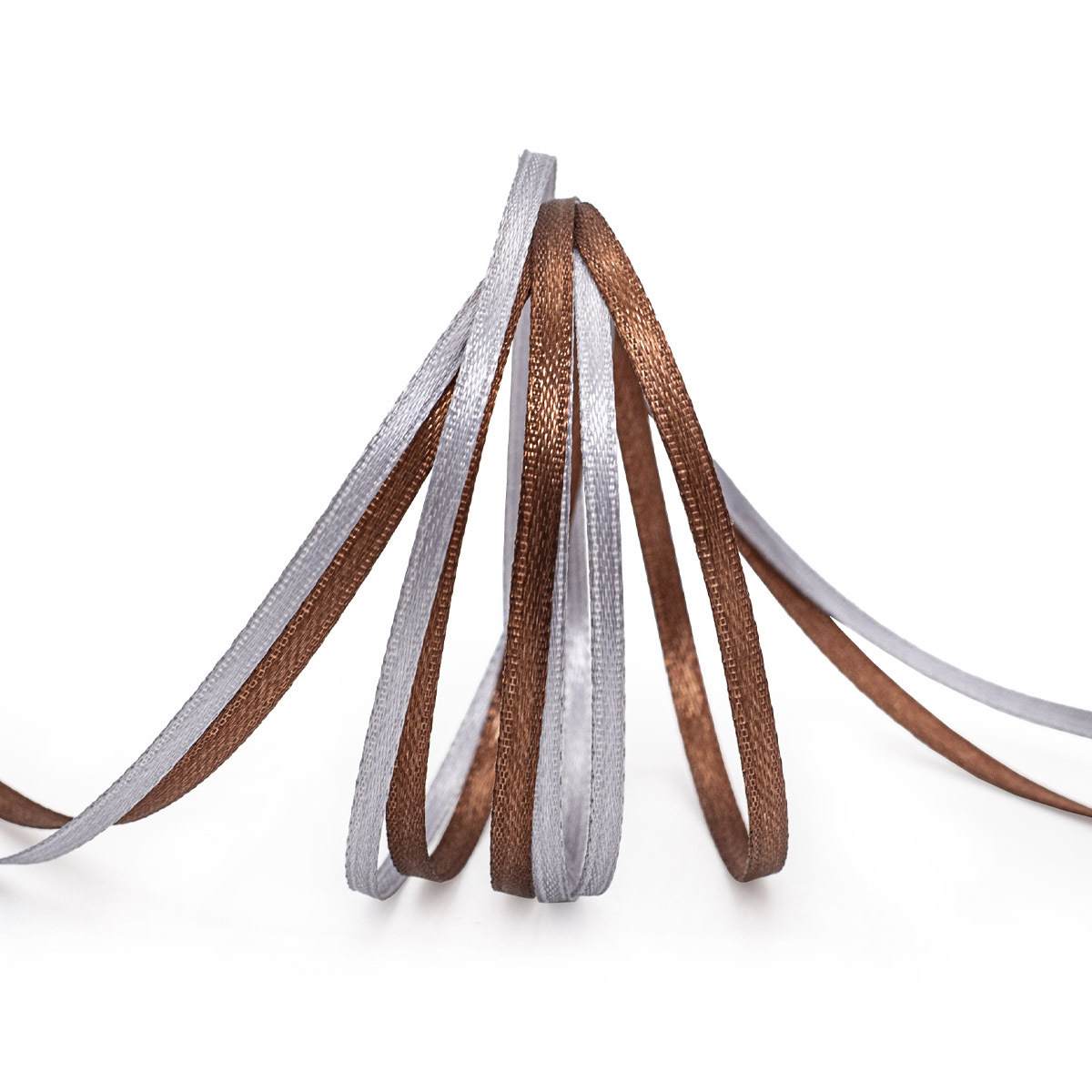 Набор атласных лент 3 мм, 100 м, 2 ролика в упаковке, коричневый/серебристо-серый