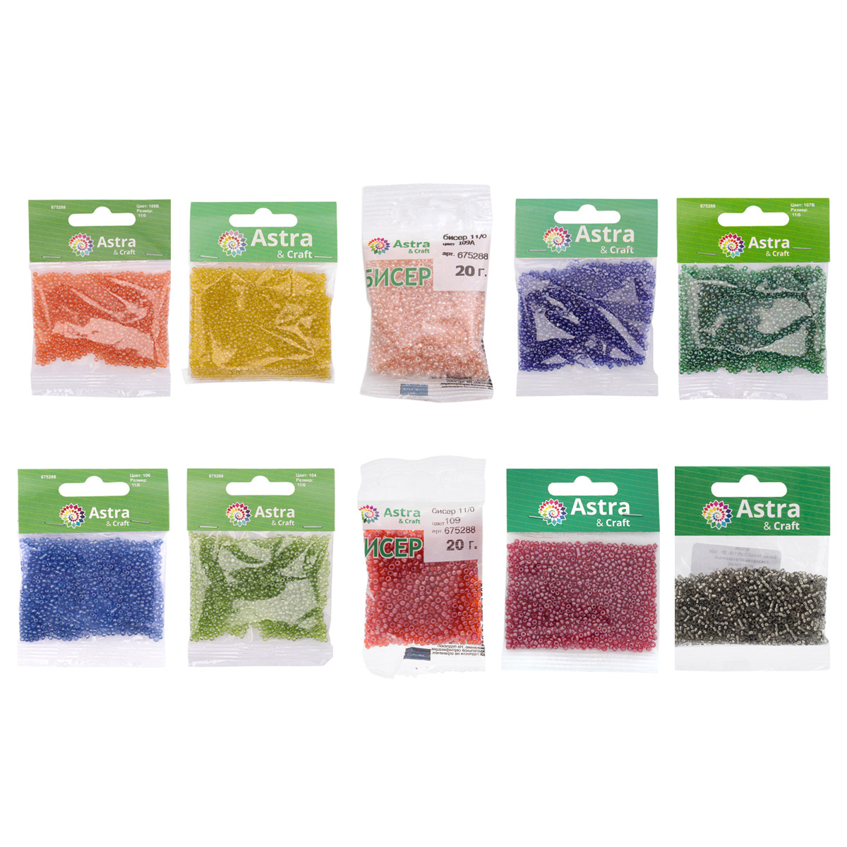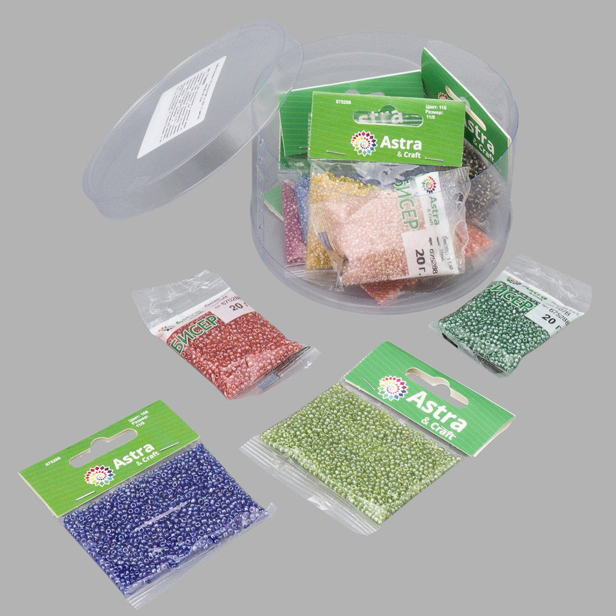 Набор бисера 11/0 ассорти №1 в тубе, 10 цветов, Astra&Craft