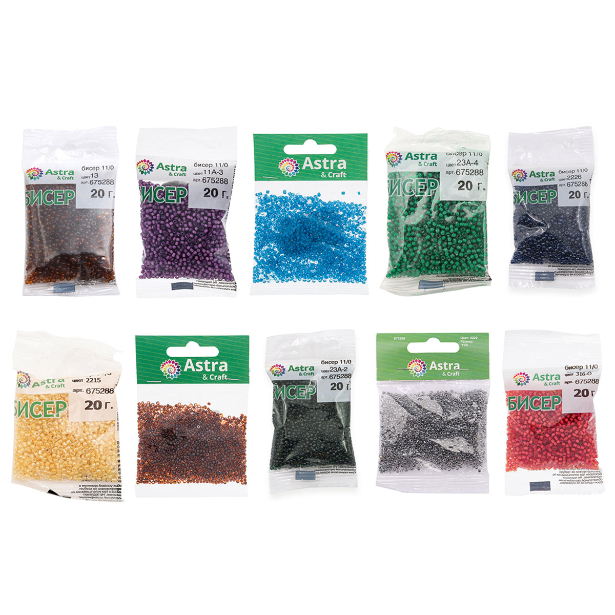Набор бисера 11/0 ассорти №15 в тубе, 10 цветов, Astra&Craft