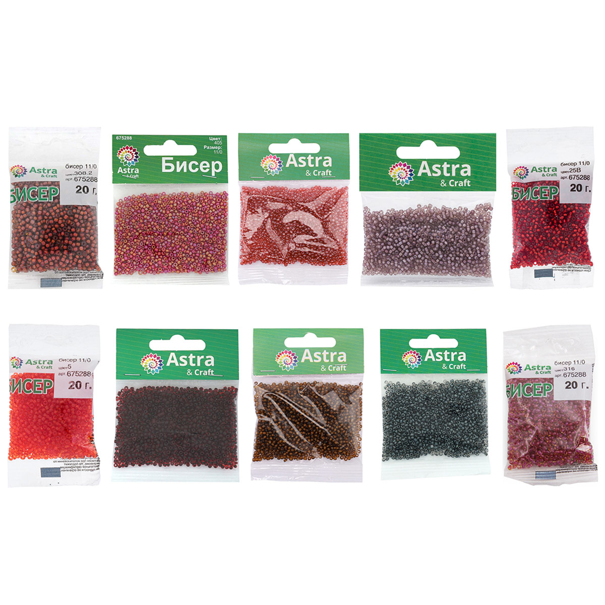 Набор бисера 11/0 ассорти №19 в тубе, 10 цветов, Astra&Craft