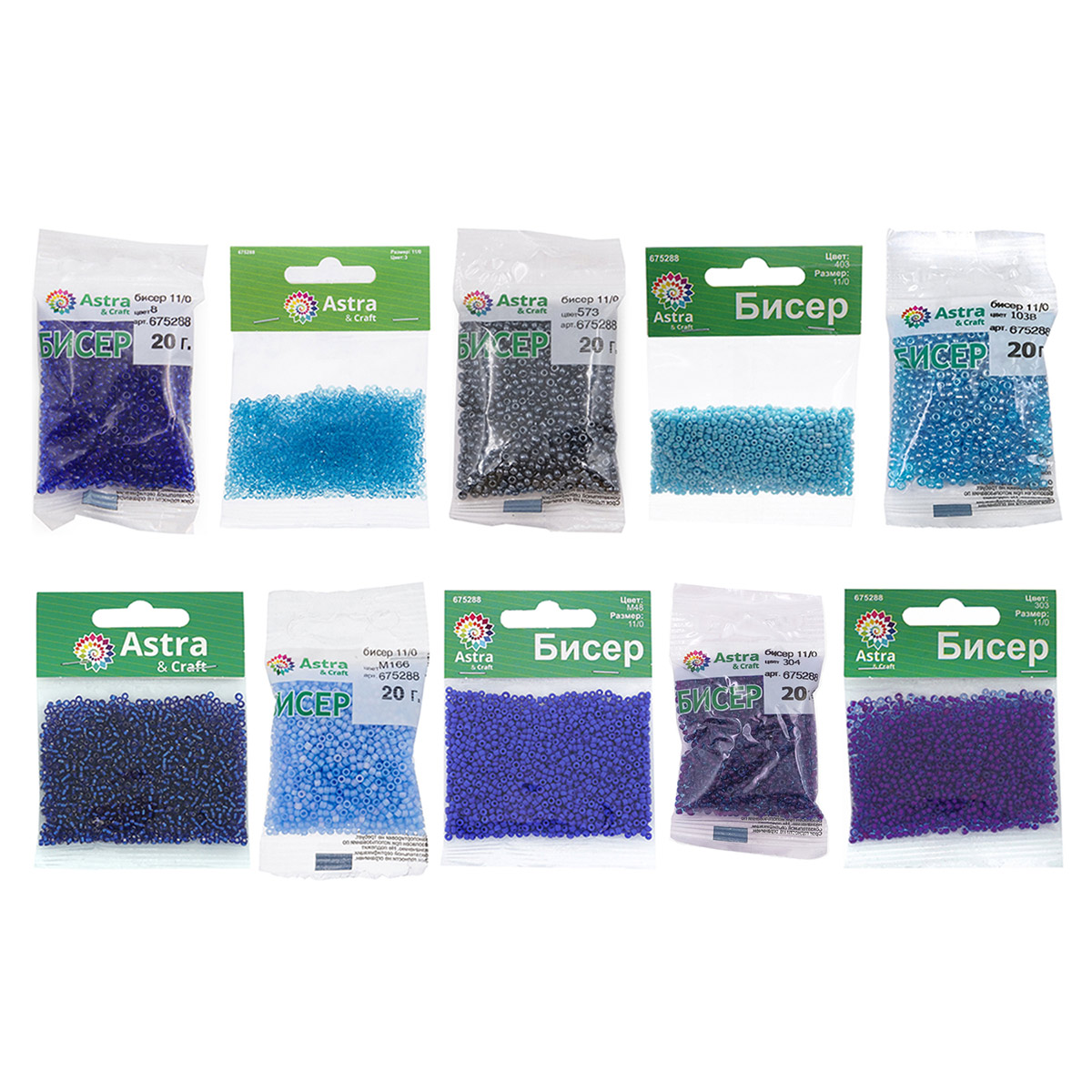 Набор бисера 11/0 ассорти №20 в тубе, 10 цветов, Astra&Craft