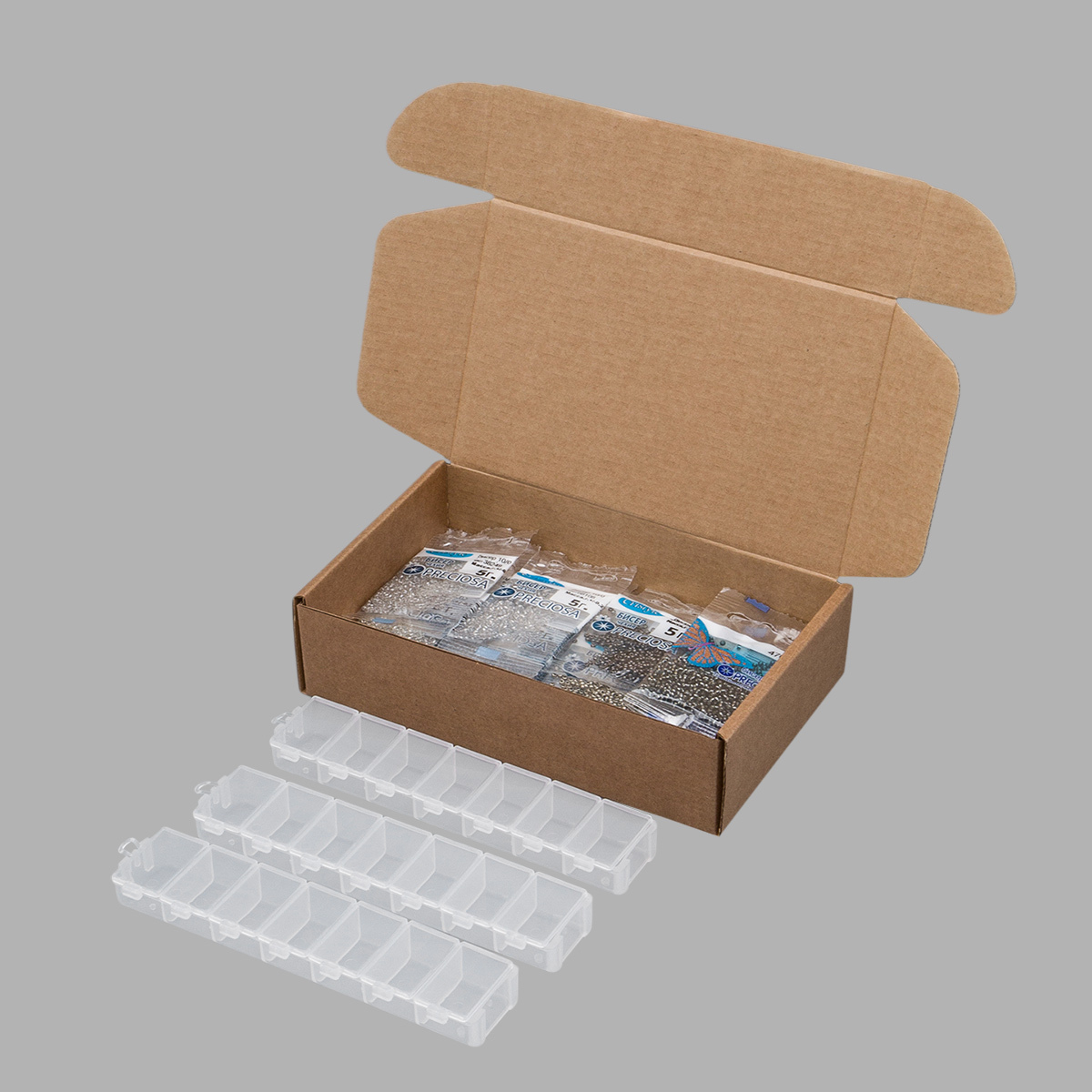 Набор бисера №01, 21 цвет по 5 гр с контейнером, № 10/0 (2.3 мм), диаметр 2,3 мм, 105 гр, Preciosa