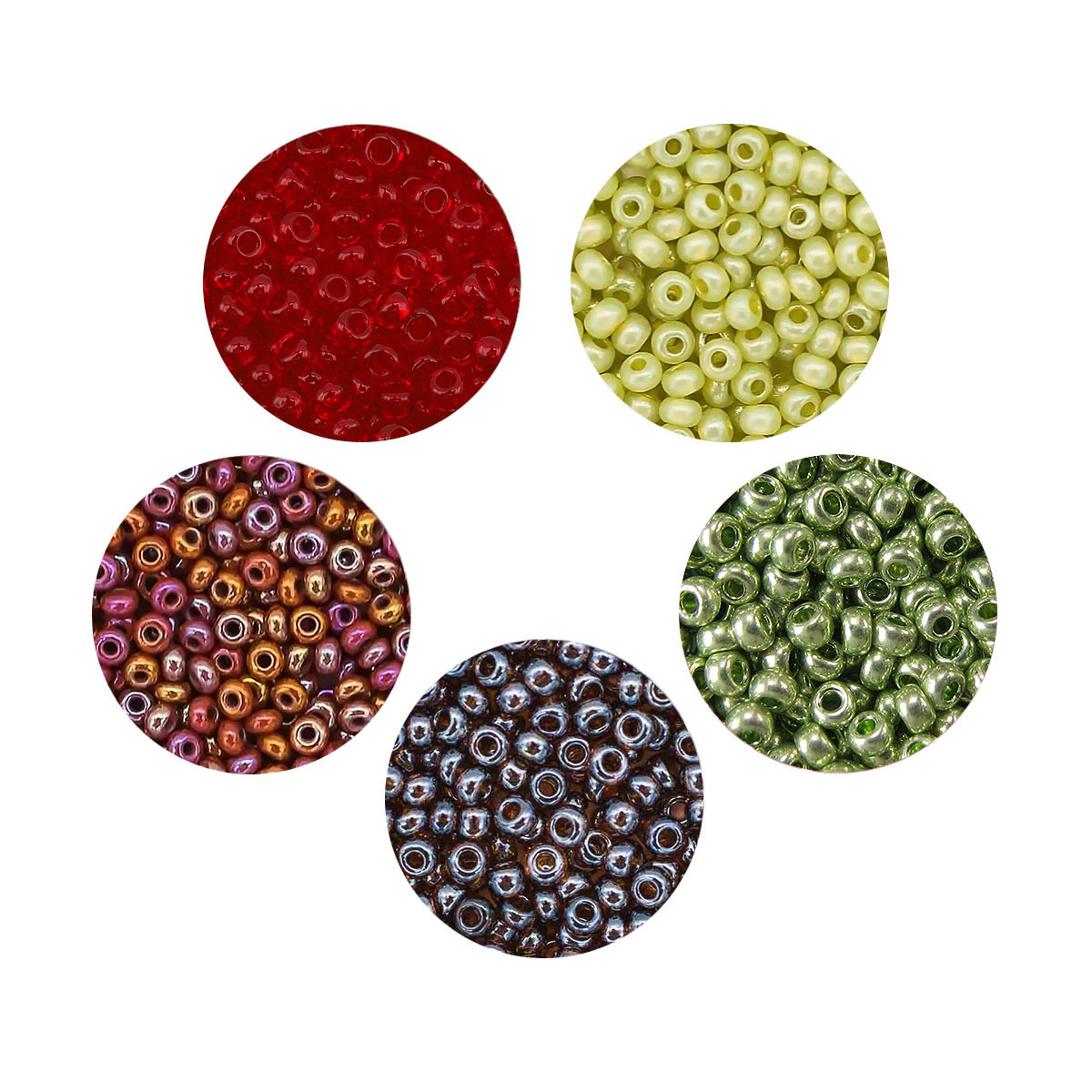 Набор бисера Preciosa 063, 5 цветов по 20 гр, № 10/0 (2.3 мм), диаметр 2,3 мм, 100 гр