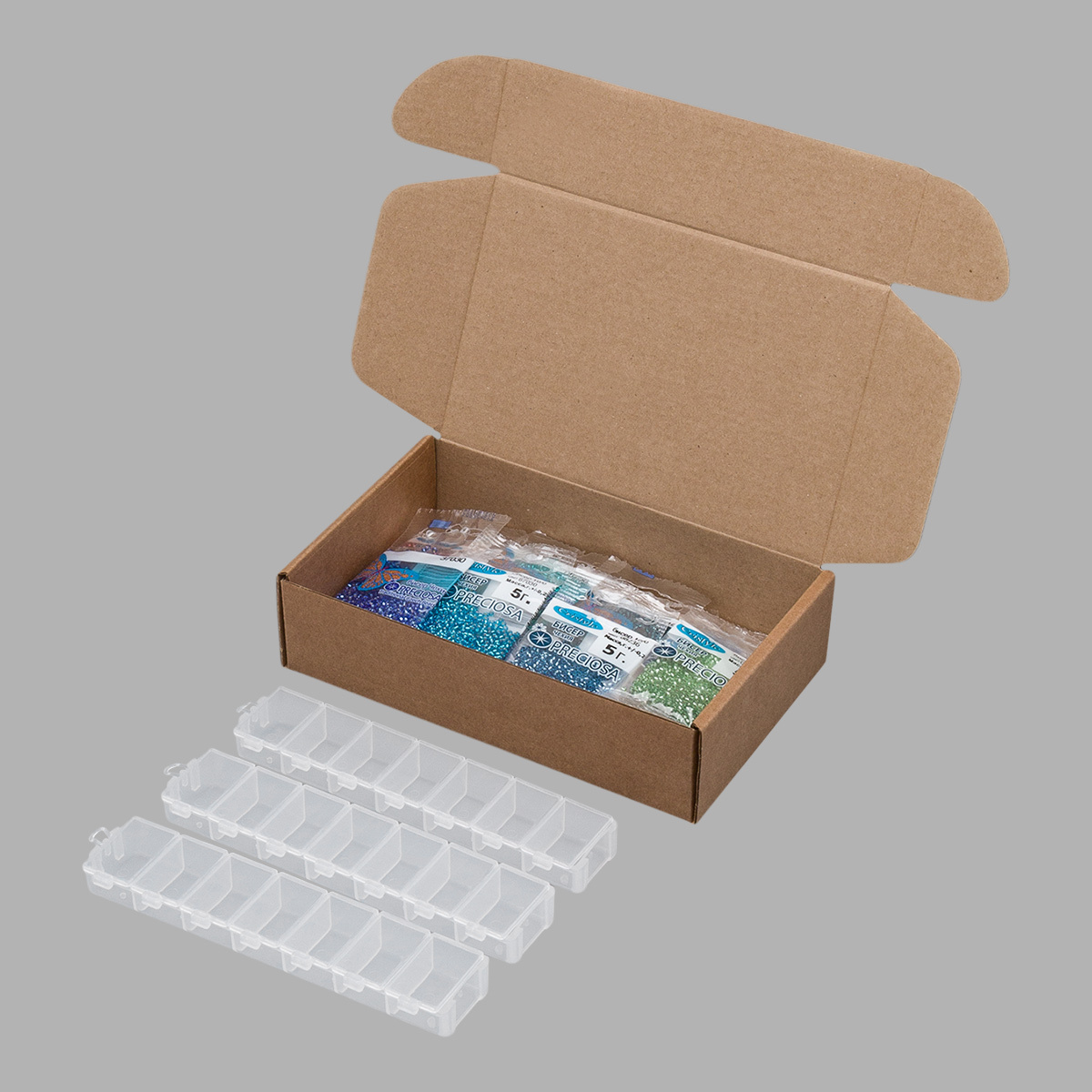 Набор бисера №09, 21 цвет по 5 гр с контейнером, № 10/0 (2.3 мм), диаметр 2,3 мм, 105 гр, Preciosa