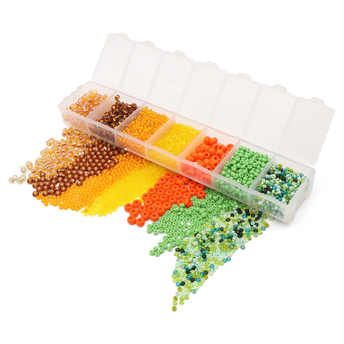 Набор чешского бисера Preciosa разных цветов – материал для ваших творческих проектов. Бисер аккуратно откалиброванный, однородный по размеру и без бракованных элементов. Подходит и для вышивки, и для плетения украшений, фигурок, других поделок. Набор упакован в пластиковый контейнер с 7 ячейками, каждая ячейка имеет отдельную крышечку и легко открывается. Бисер Preciosa давно пользуется доверием потребителей. Он надолго сохранит яркость и цвет, в том числе при длительном контакте с кожей. Вышитые бисером изделия допускается стирать в ручном режиме при температуре до 40 градусов Цельсия. В наборе бисер прозрачный с покрытием/непрозрачный 7 цв.: коричневый прозрачный 4/0; фиолетовый прозрачный с серебряным центром 7/0; золотой прозрачный с серебряным центром 10/0; желтый прозрачный 12/0; оранжевый непрозрачный жемчужный 9/0; зеленый непрозрачный 8/0; ассорти 10/0. Всего 90 г.