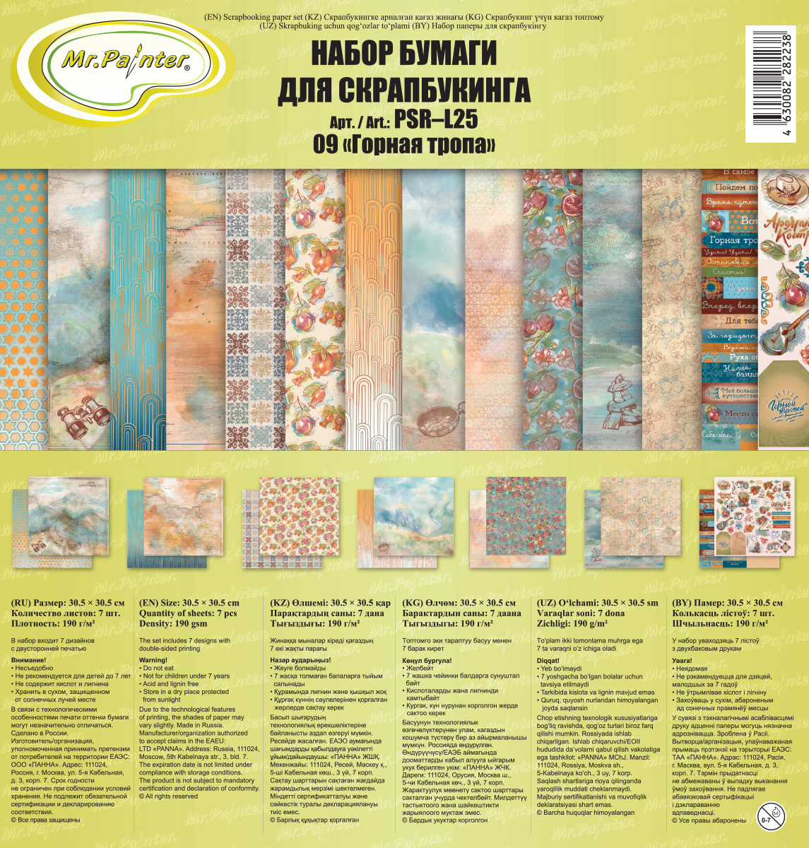 Набор бумаги для скрапбукинга 190 г/м², 30.5х30.5 см, 7 шт, 09 Горная тропа, Mr.Painter PSR-L25