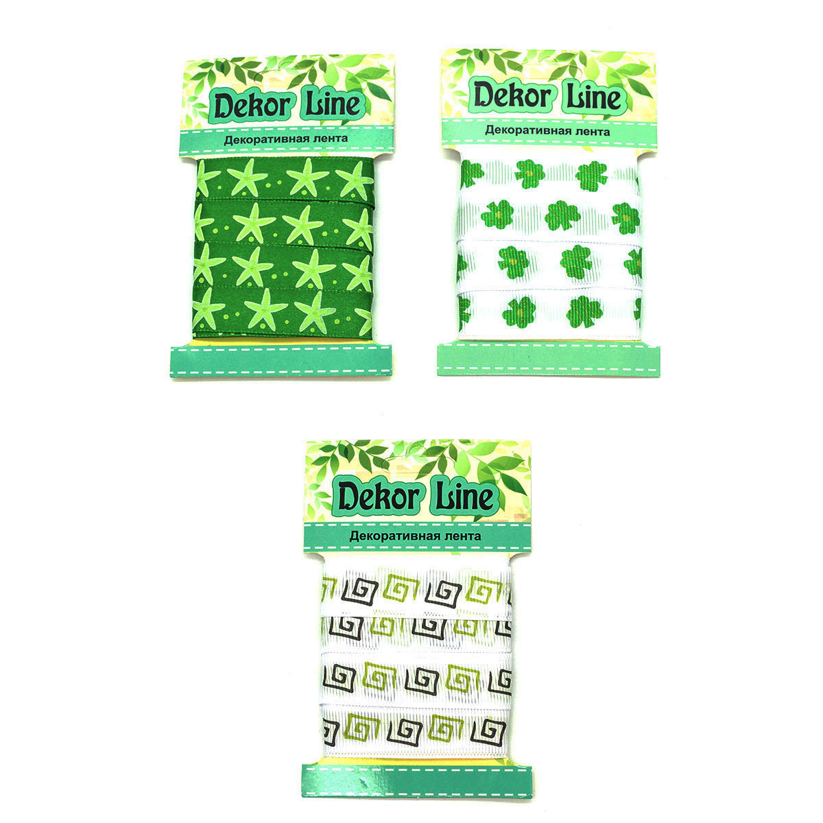 Набор декоративных лент с принтом (3 упак 15 мм, по 3м), Зеленое ассорти 2