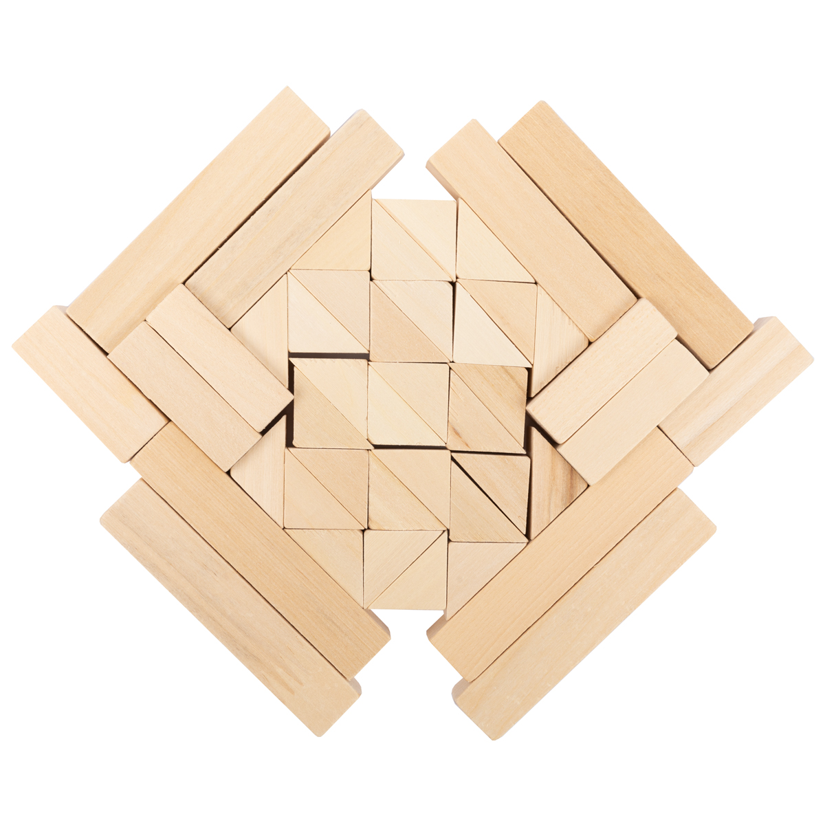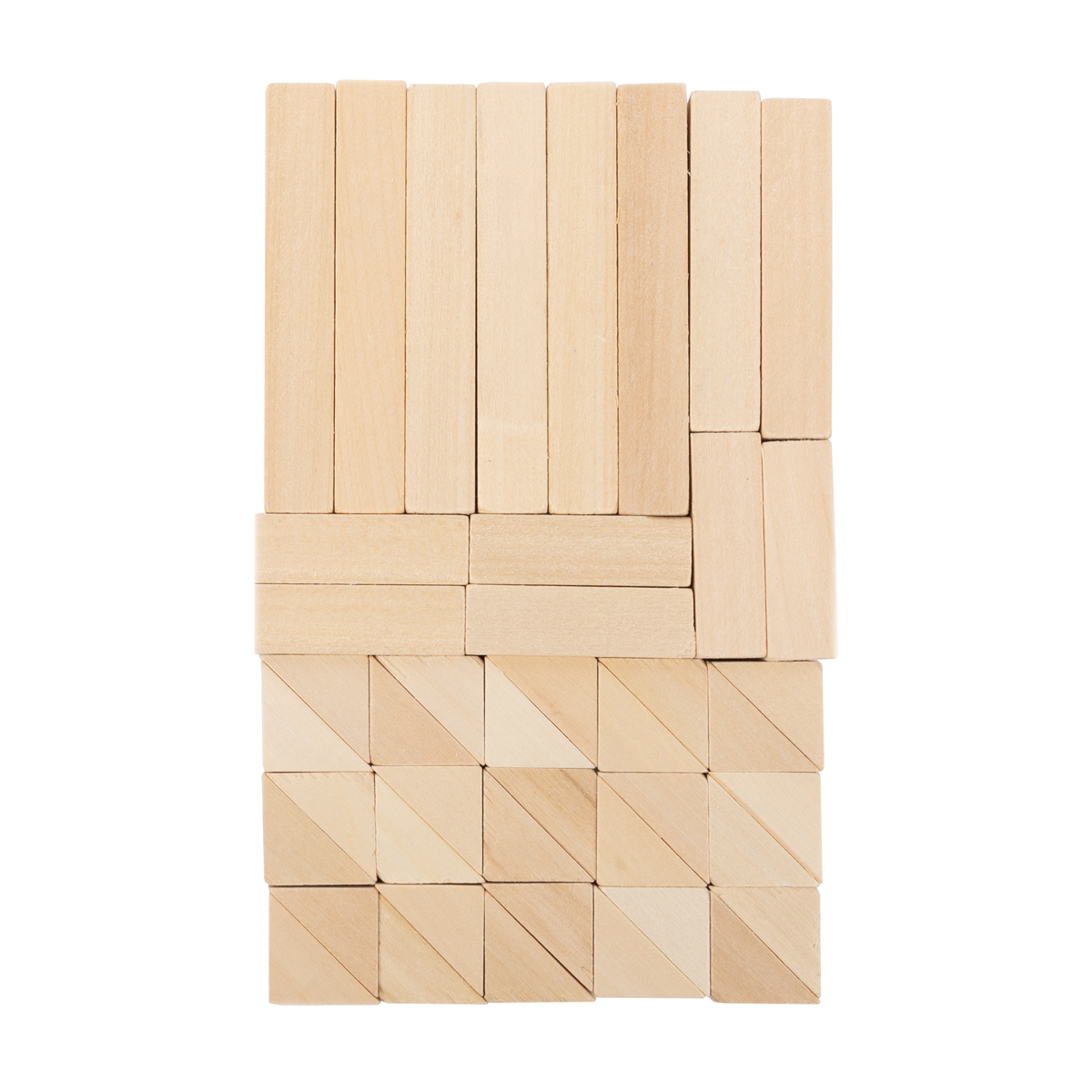 В состав набора входят деревянные заготовки в виде треугольников и брусков, изготовленные из высококачественной липы. Эта порода дерева отличается своей прочностью и долговечностью, а также обладает красивой текстурой и приятным цветом. Благодаря этому, готовые изделия будут выглядеть эстетично и гармонично вписываться в любой интерьер.