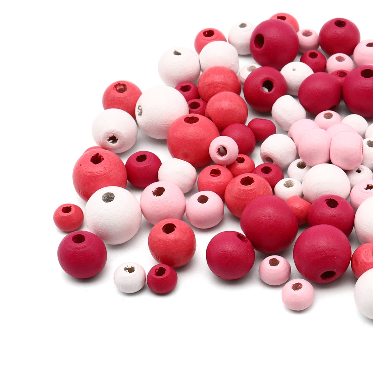 Бусины дерево набор со шнуром 6, 8, 10, 12 мм, розовый микс, 90 шт, Astra&Craft, 214