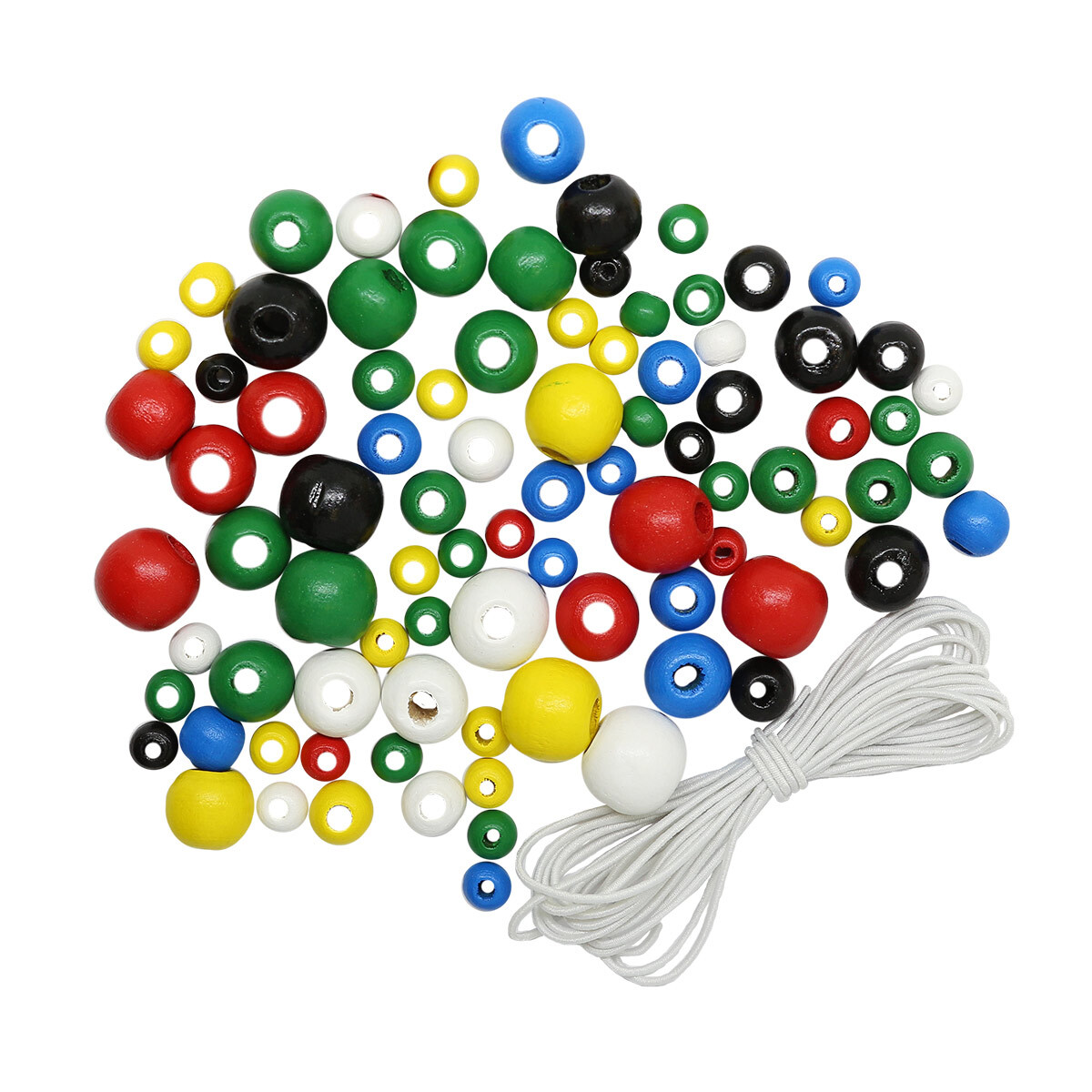 Бусины дерево набор со шнуром 6, 8, 10, 12 мм, яркий микс, 90 шт, Astra&Craft, 160819