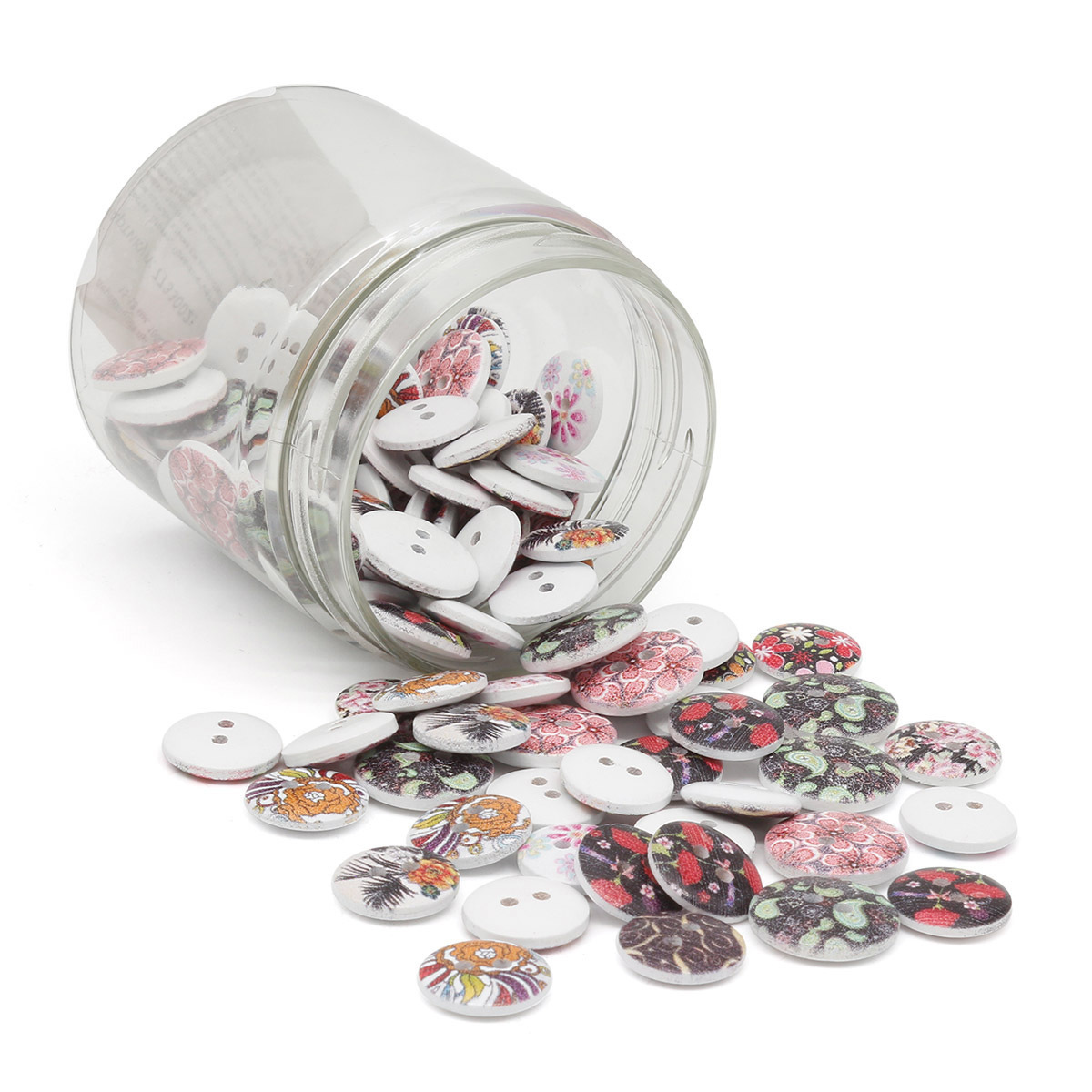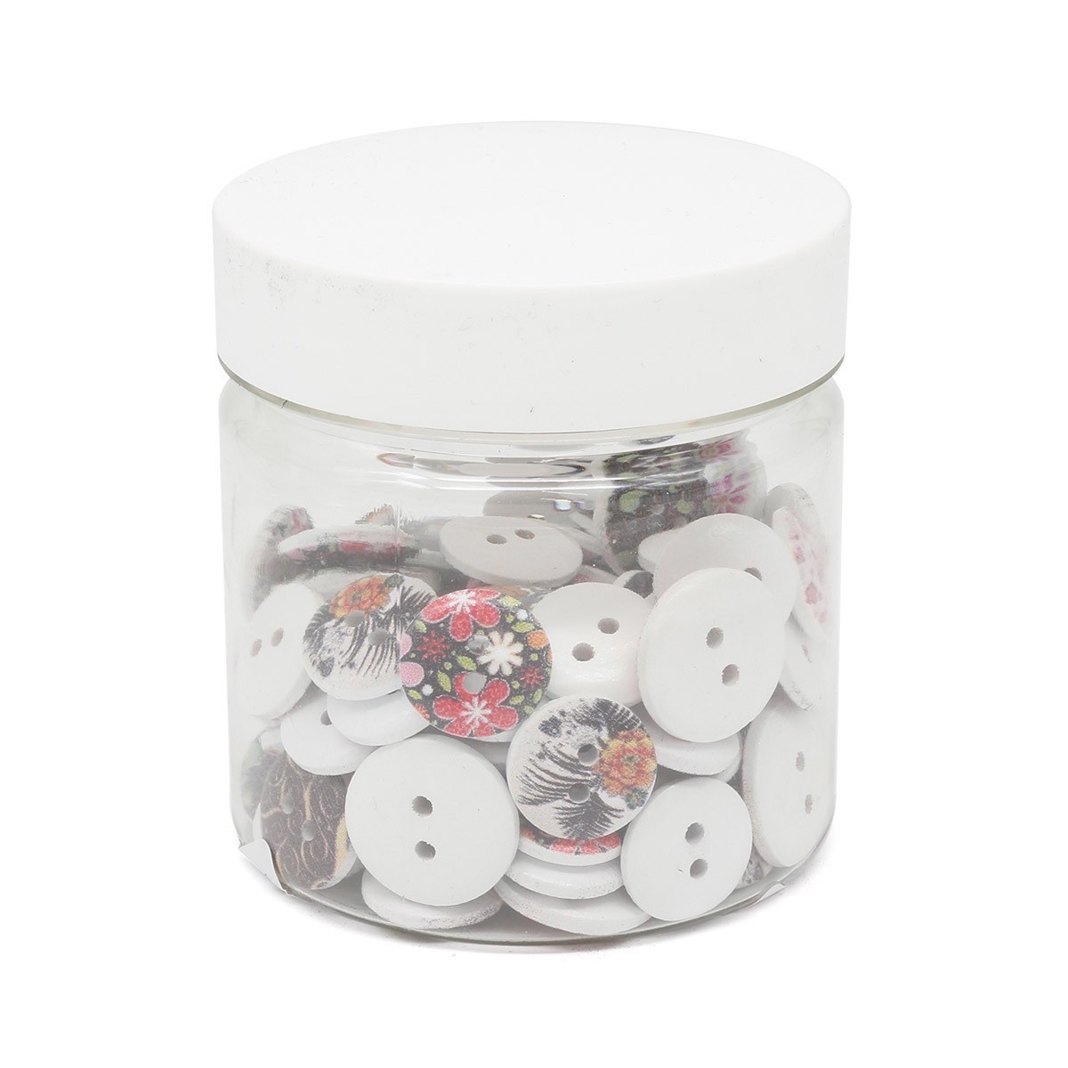 Набор пуговиц 'Ассорти' создан для любителей мастерить оригинальные поделки из подручных материалов. Россыпь деревянных пуговиц 'на прокол' с нанесенным рисунком – основа для ваших творческих проектов. Внимание: данные пуговицы нельзя стирать! Несколько идей: – украсьте детские вещи и аксессуары (сумки, головные уборы); – декорируйте авторскую открытку, обложку, блокнот в технике скрапбукинга; – используйте пуговицы с рисунком как часть композиции для декоративного панно; – расшейте пуговицами прихватку или рукавицу. Пуговицы упакованы в банку из твердого прозрачного пластика (ПЭТ) с откручивающейся крышкой. Это удобная упаковка, которую можно использовать многократно для хранения материалов для рукоделия, украшений и других предметов. В наборе: пуговицы деревянные 'на прокол' с рисунком (10 видов), размер 15-18 мм, всего 100 штук; банка прозрачная ПЭТ, объем 150 мл; крышка белая винтовая, диаметр 58 мм.