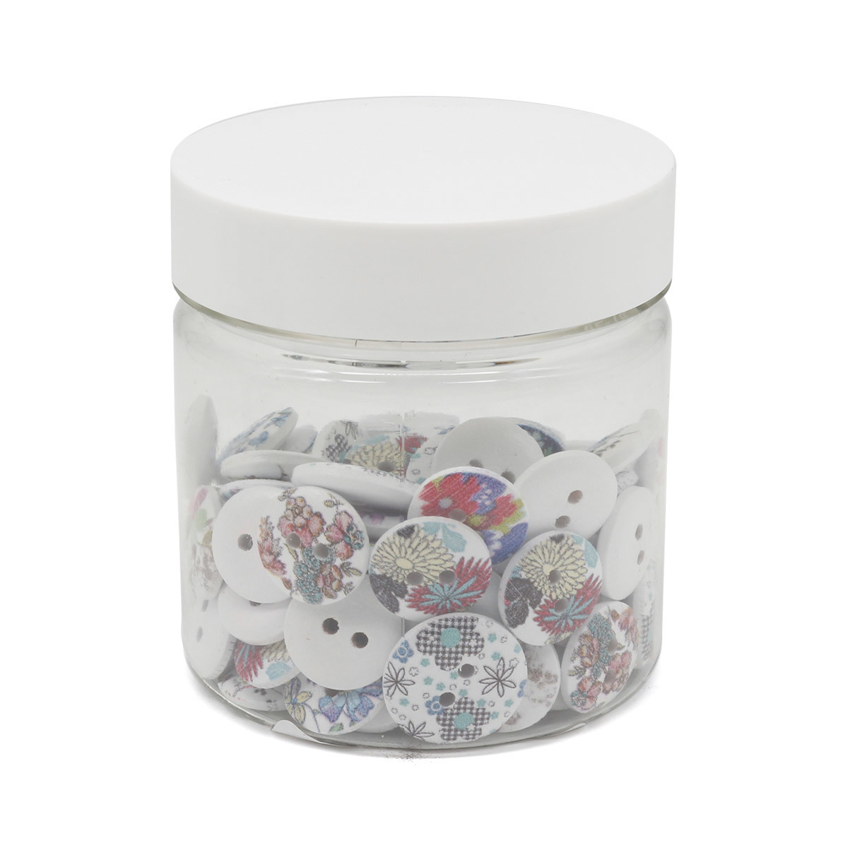 Набор пуговиц 'Цветочки-лепесточки' создан для любителей мастерить оригинальные поделки из подручных материалов. Россыпь деревянных лакированных пуговиц 'на прокол' с нанесенным рисунком – основа для ваших творческих проектов. Внимание: данные пуговицы нельзя стирать! Несколько идей: – украсьте детские вещи и аксессуары (сумки, головные уборы); – декорируйте авторскую открытку, обложку, блокнот в технике скрапбукинга; – используйте пуговицы с рисунком как часть композиции для декоративного панно; – расшейте пуговицами прихватку или рукавицу. Пуговицы упакованы в банку из твердого прозрачного пластика (ПЭТ) с откручивающейся крышкой. Это удобная упаковка, которую можно использовать многократно для хранения материалов для рукоделия, украшений и других предметов. В наборе: пуговицы деревянные 'на прокол' с рисунком (10 видов), размер 15-18 мм, всего 100 штук; банка прозрачная ПЭТ, объем 150 мл; крышка белая винтовая, диаметр 58 мм.