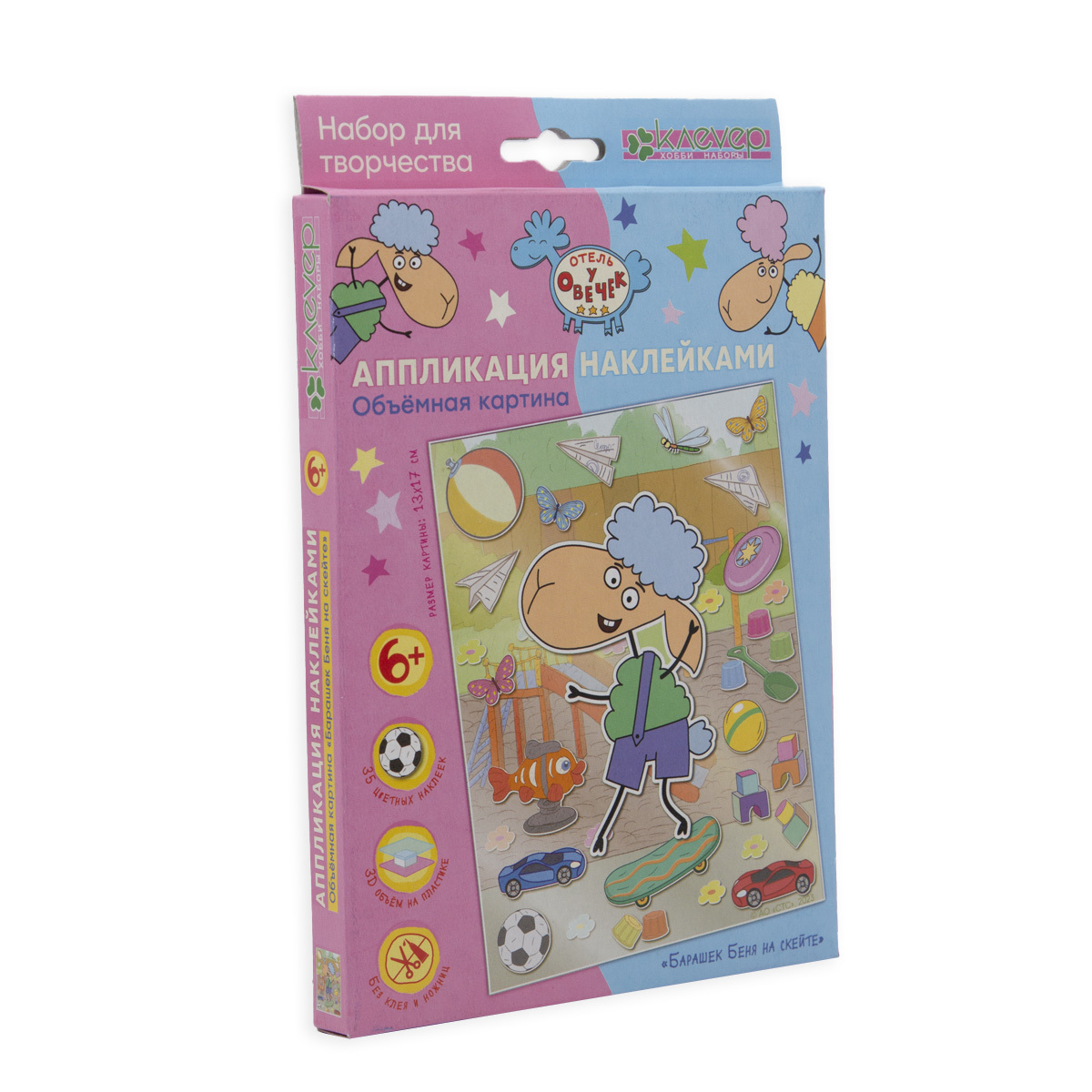 Картина-аппликация Отель у овечек. Барашек Беня на скейте (аппликация наклейками) 13х17см Клевер, ЛО38-914