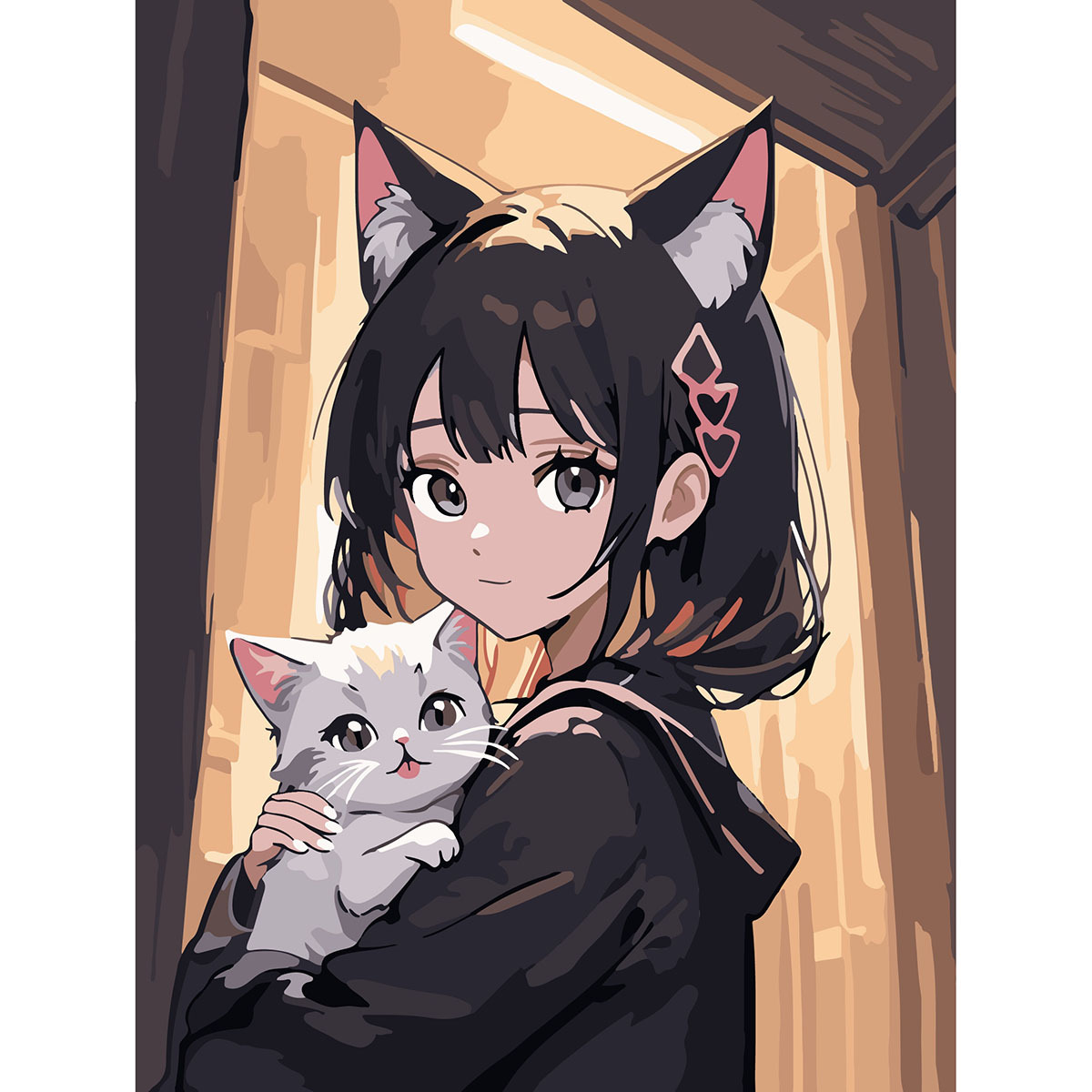 Картина по номерам Cristyle ST002, Неко-девушка с котенком, 30х40 см