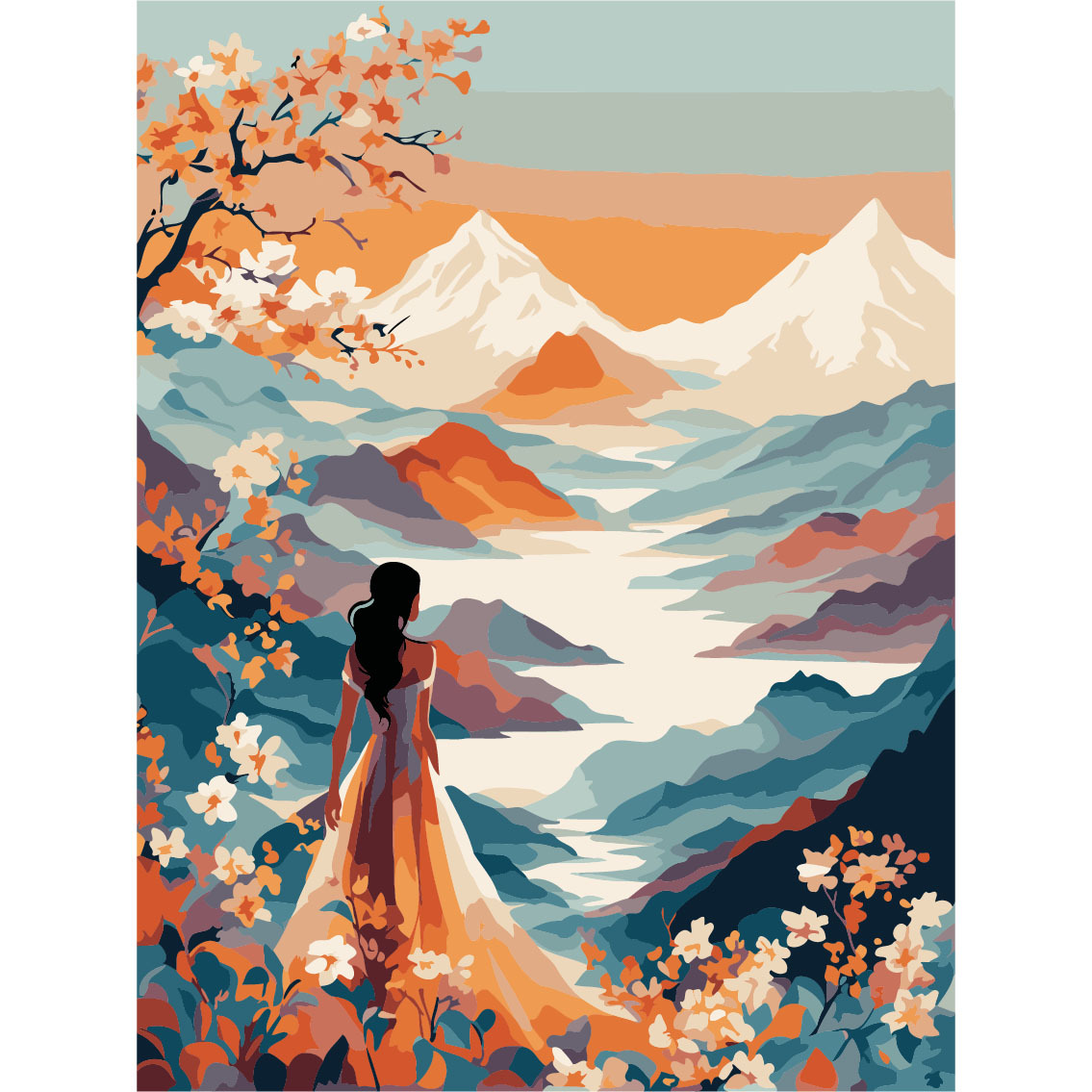 Картина по номерам Cristyle ST044, Яркие красоты. Девушка в окружении гор, 30х40 см