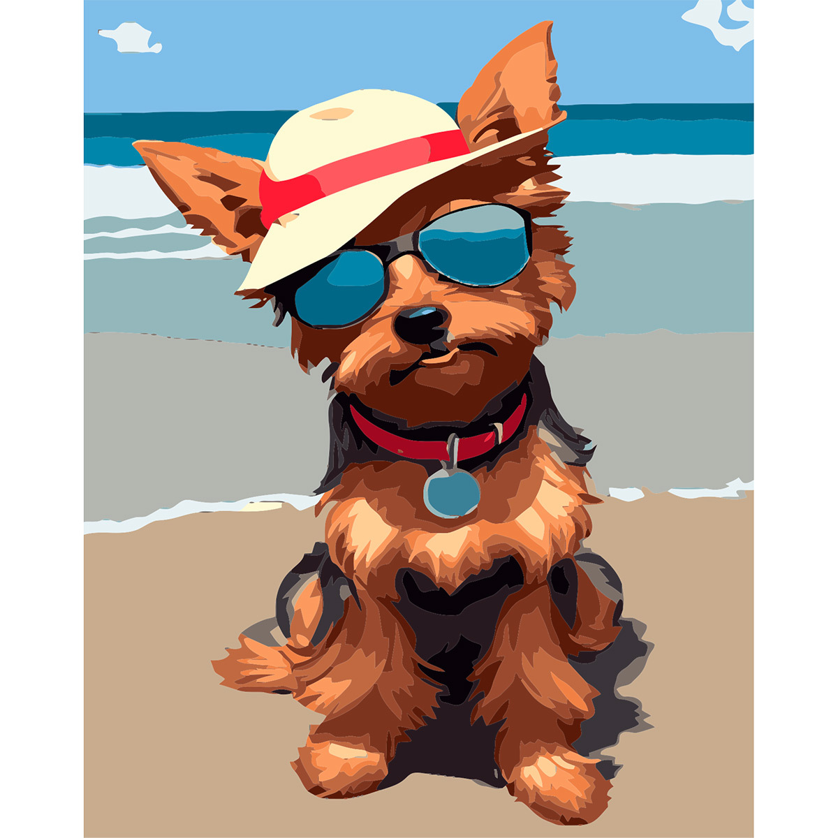 Картина по номерам Cristyle S076, Йоркширский терьер на пляже, 40х50 см
