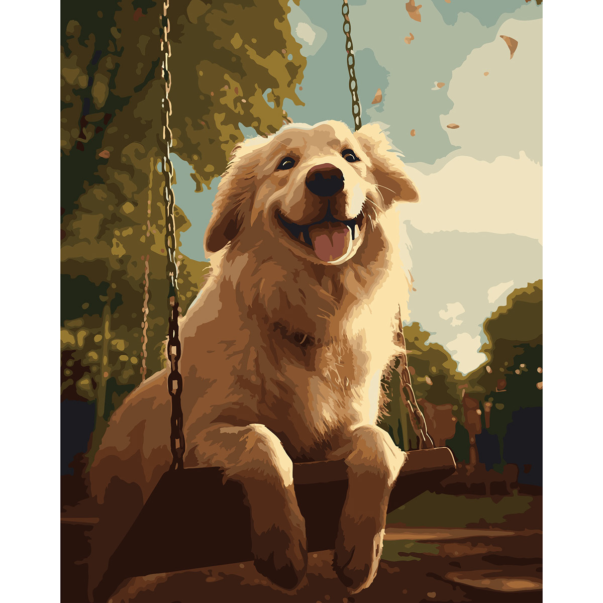 Картина по номерам Cristyle S079, Золотистый ретривер на качелях, 40х50 см