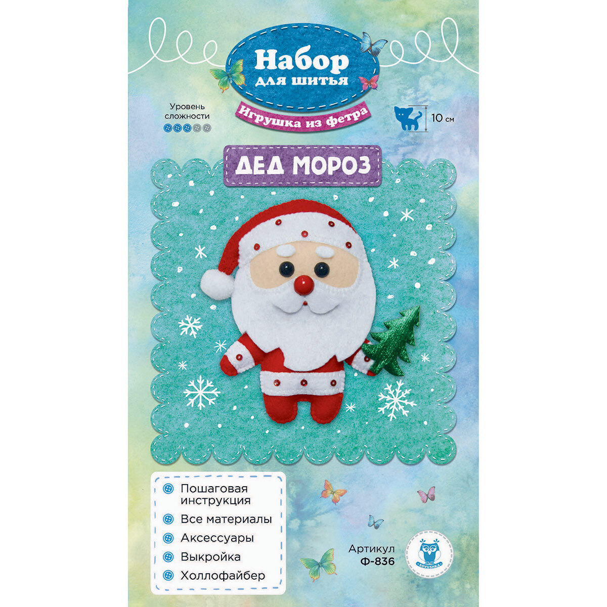 Набор для шитья игрушки из фетра Дед Мороз 10см, Ф-836