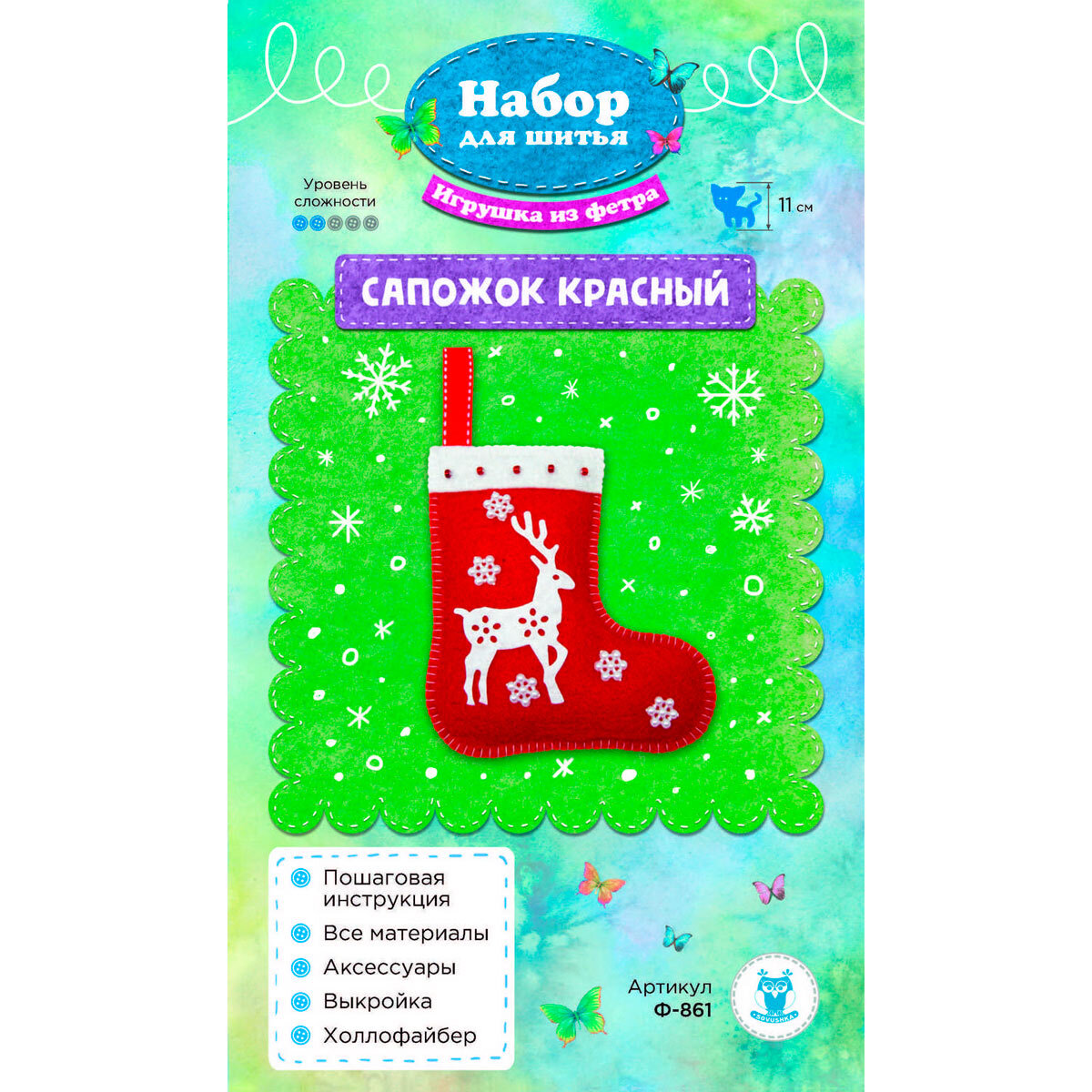 Набор для шитья игрушки из фетра Сапожок красный 11 см, Ф-861