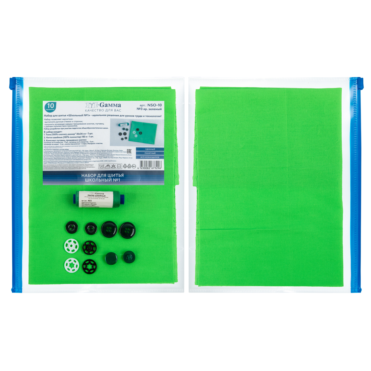 Швейный набор Школьный №1, 10 предметов, ШК-03 яр.зеленый, Gamma NSO-10