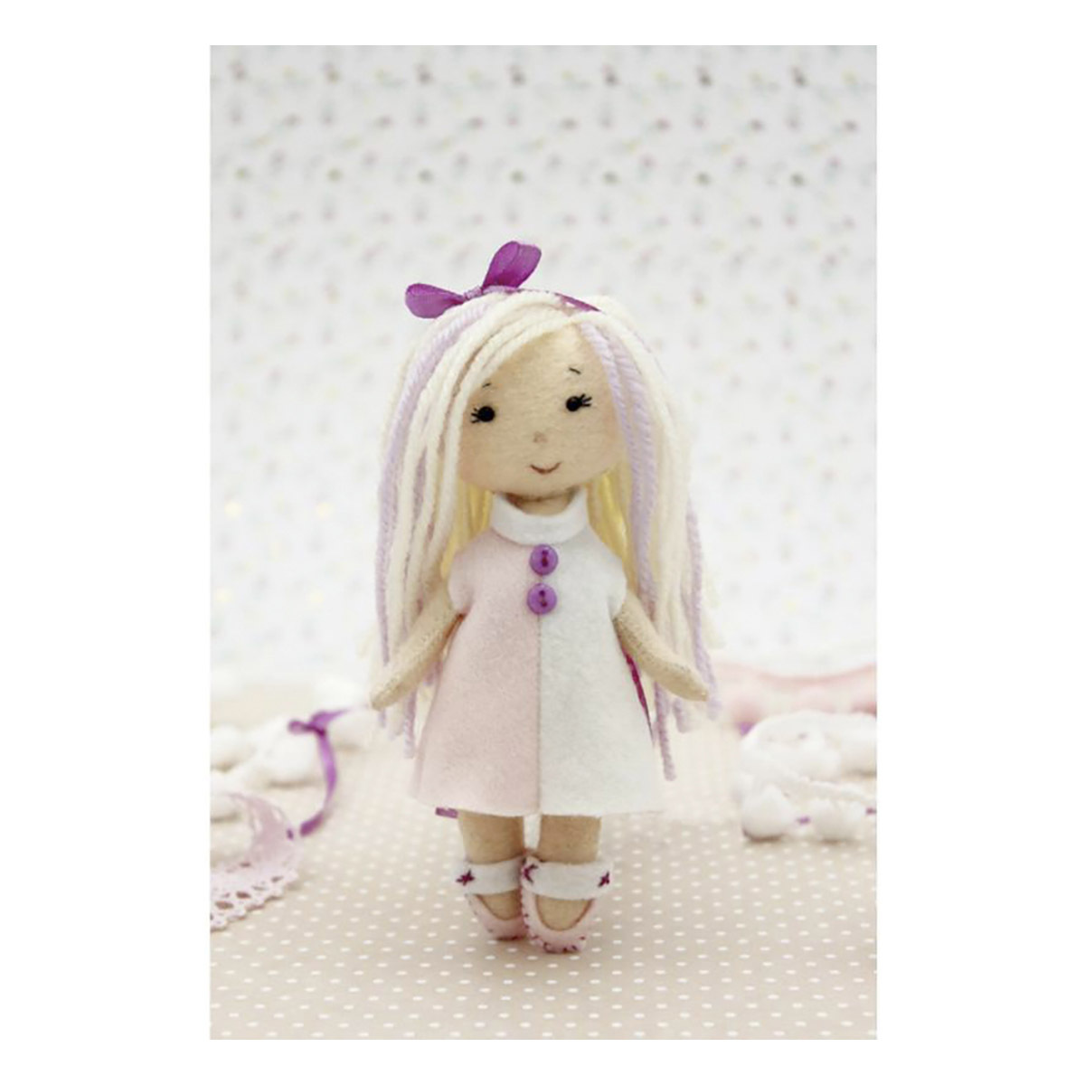 У каждой интерьерной игрушки от дизайн-студии 'Кукла Перловка' – свой характер и своя история. Куклы серии 'Подружки' – это милые мечтательные девочки, которые составят компанию вам и вашему ребенку. Украсьте такой игрушкой интерьер, и она поможет вам создать веселую, беззаботную атмосферу, будет напоминать о счастливом детстве. Готовая игрушка – прекрасный подарок. В набор входят: фетр, пряжа, мулине, пуговицы, тесьма, выкройки и инструкция. Дополнительно понадобятся: наполнитель синтепон или синтепух, игла. Высота готовой игрушки: 15 см.