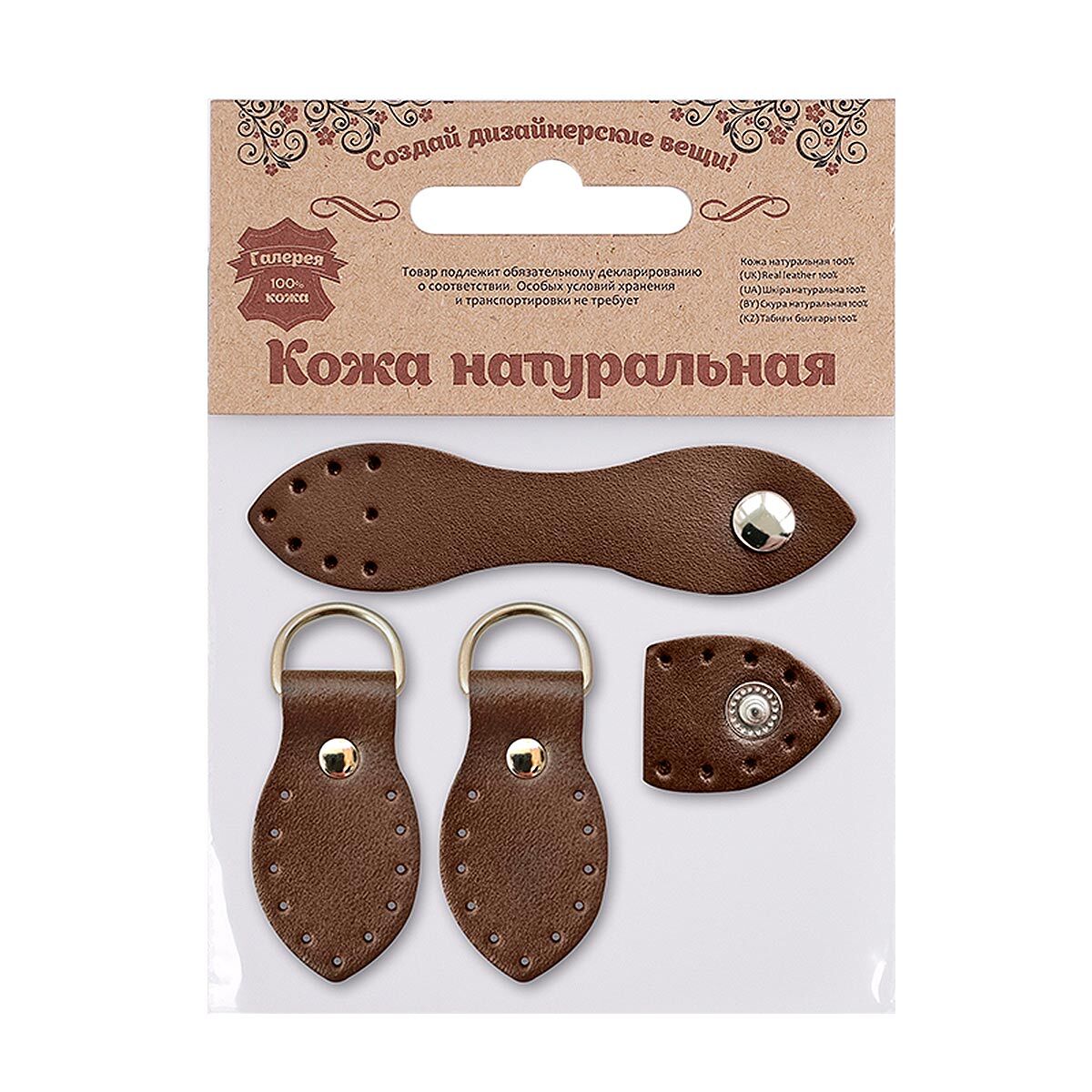 Набор для сумки Застежка 2,5х10,1см-1шт., петельки 3х5,5см-2 шт, 100% кожа (82 темно-коричневый), 1402
