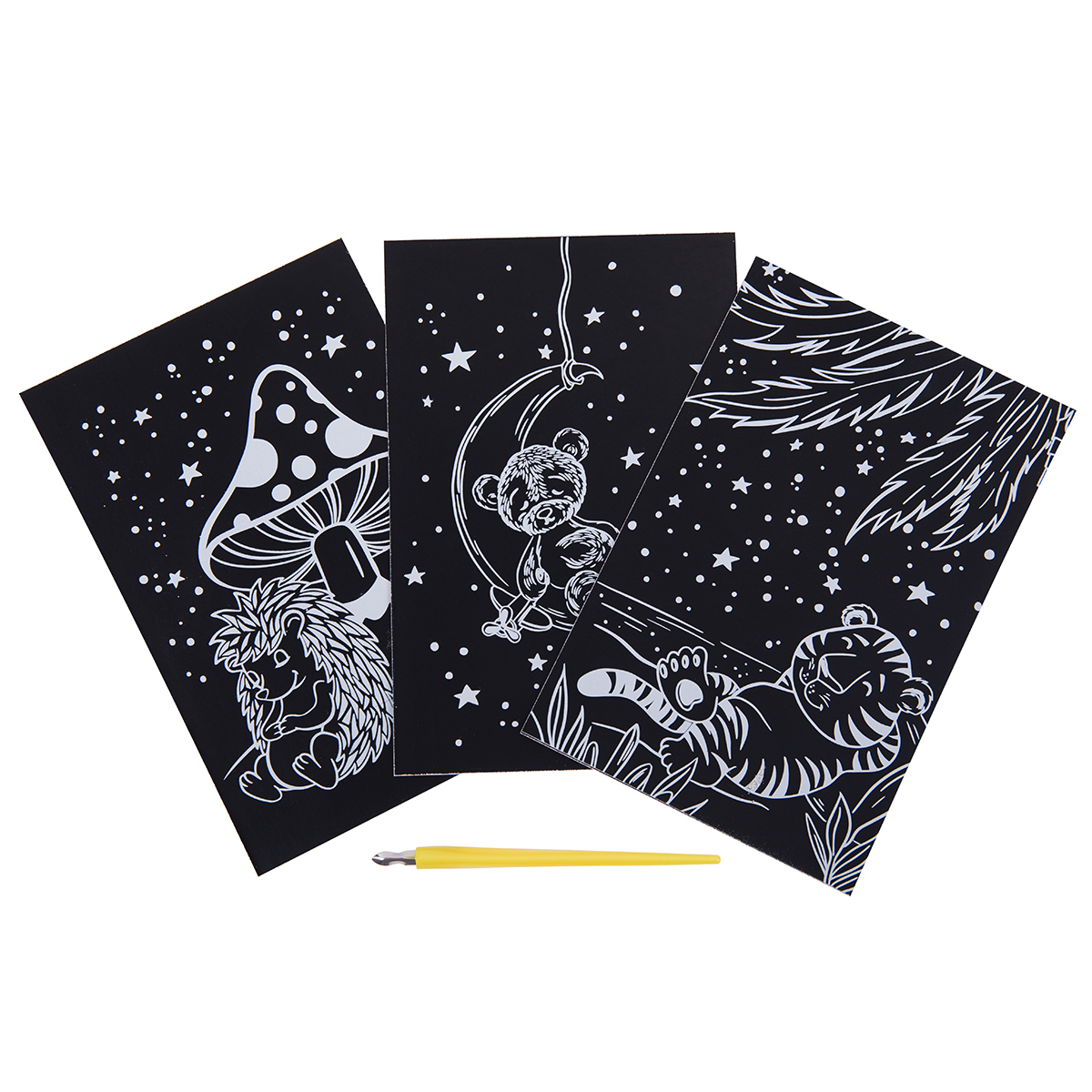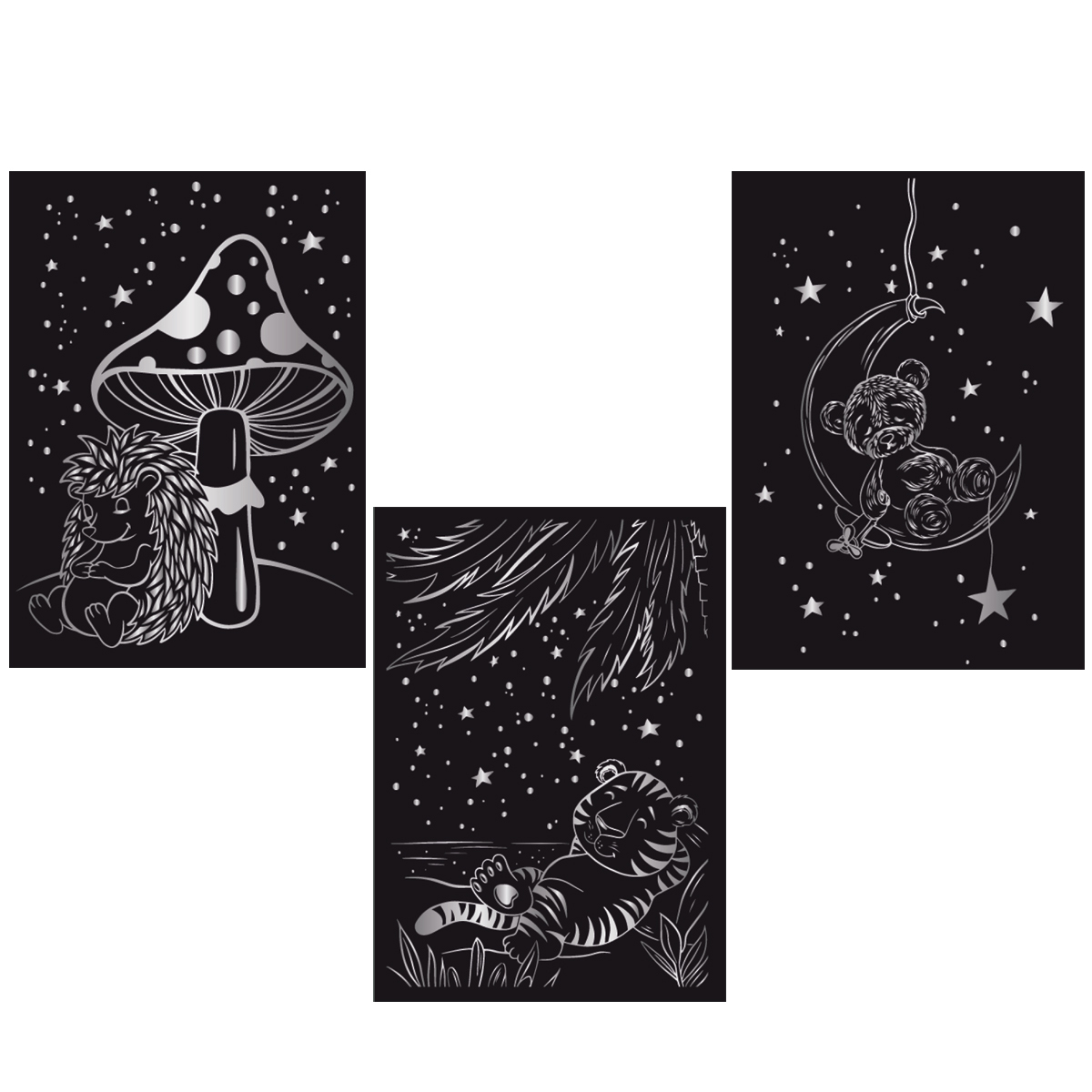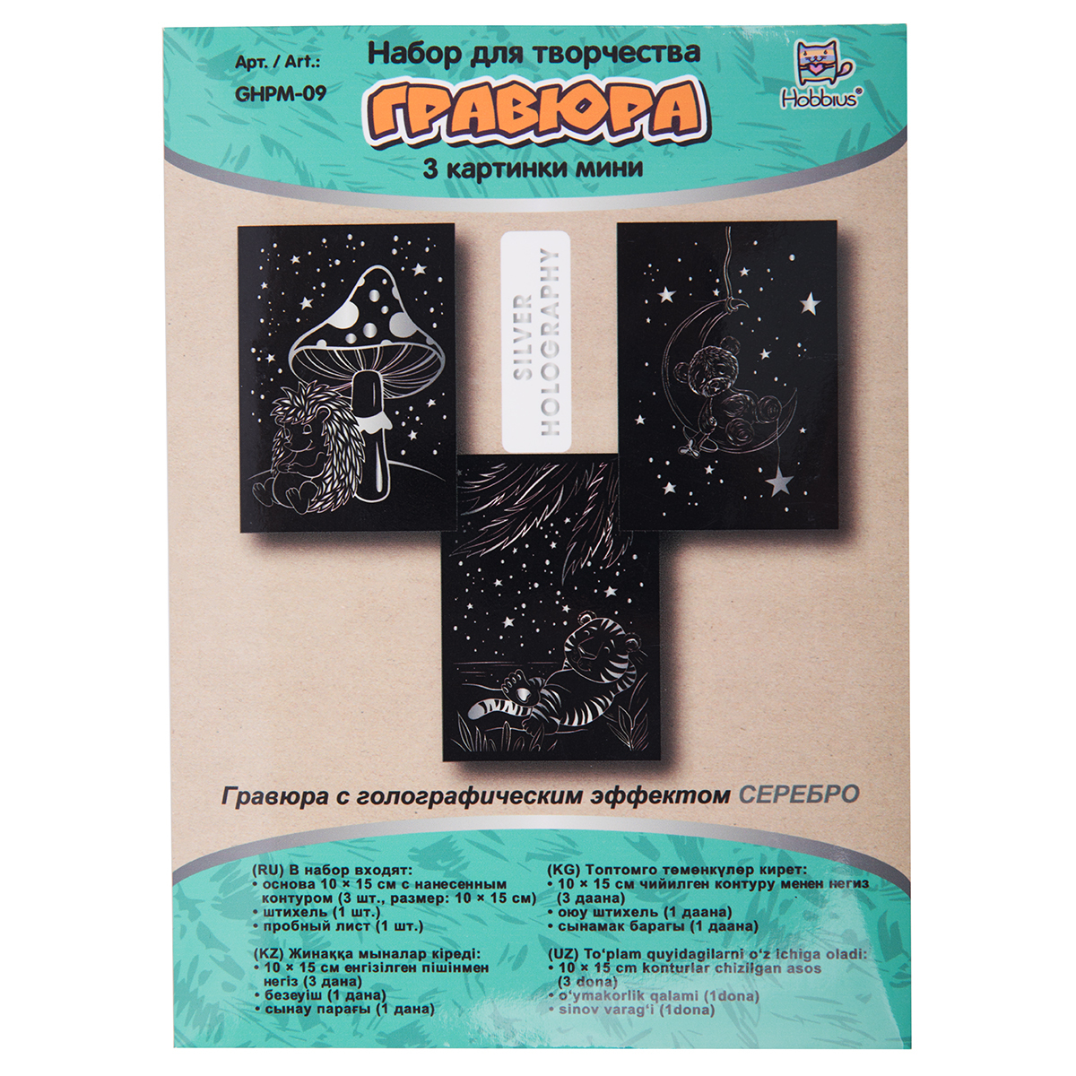 Набор для творчества Гравюра мини Спокойной ночи (серебро), 10х15 см, 1х3 шт, Hobbius GHPM-09