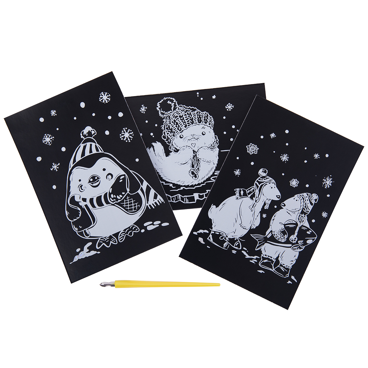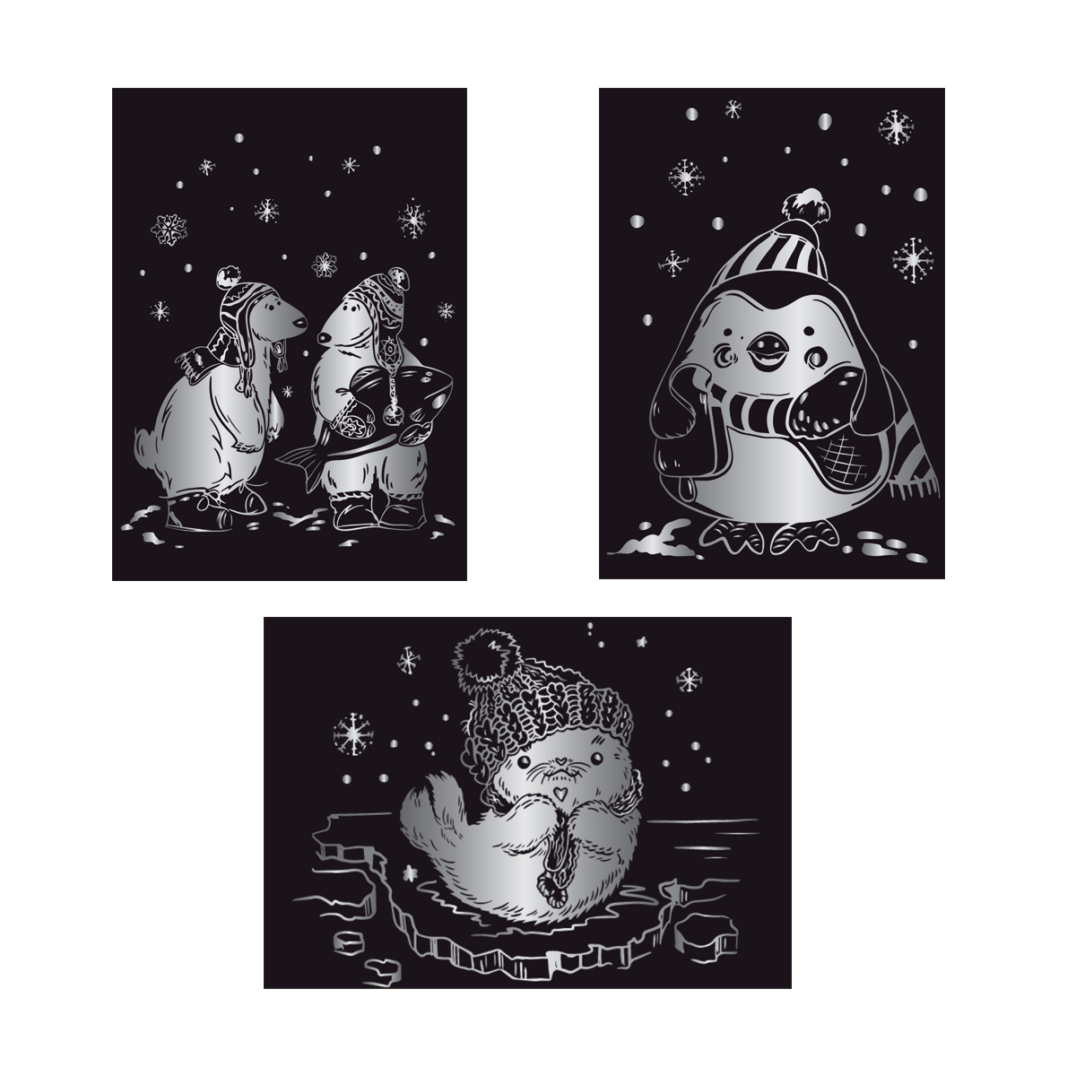 Набор для творчества Гравюра мини Зимние забавы (серебро), 10х15 см, 1х3 шт, Hobbius GHPM-13
