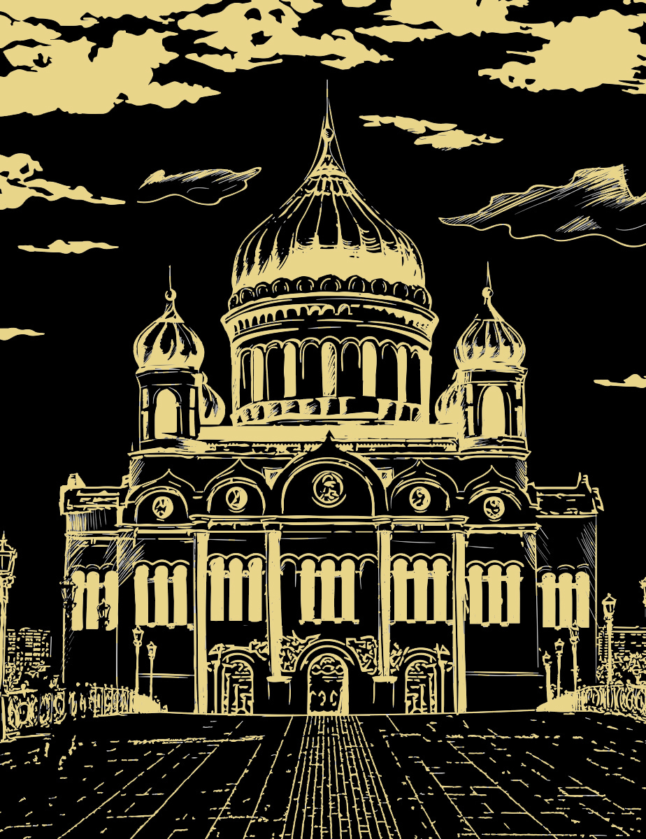 Набор для творчества Гравюра 20х25.5 см, №24 Храм Христа Спасителя (золото), Hobbius SGHK