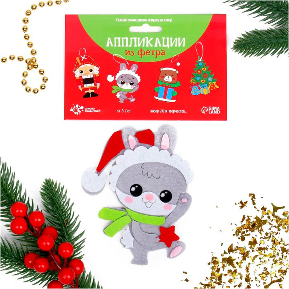 Набор для творчества - создай ёлочное украшение из фетра "Зая", 7755676