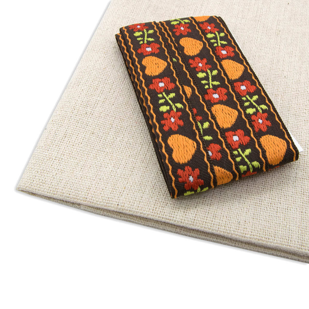 Ткань для рукоделия в наборе с тесьмой жаккард 50х50см+2м (21947/21114 коричневый) 29503