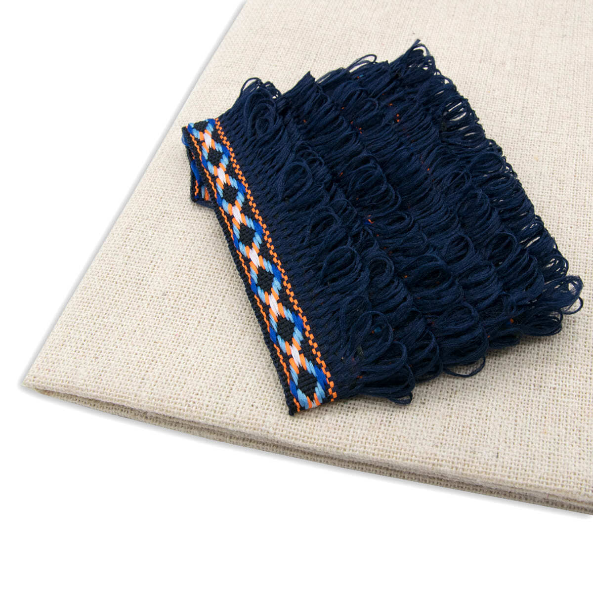 Ткань для рукоделия в наборе с тесьмой жаккард -бахрома 50х50см+1м (21947/34113 т.синий) 29501