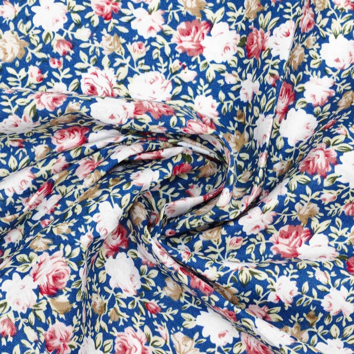 Ткань для рукоделия в наборе Цветы-01 Ткань для рукоделия с лентой (01*711: х/б 48*50см+1,5м), синий, 29298