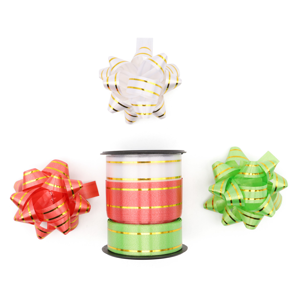Набор для упаковки: 3 ленты + 3 бантика, AR397, белый/зеленый/красный