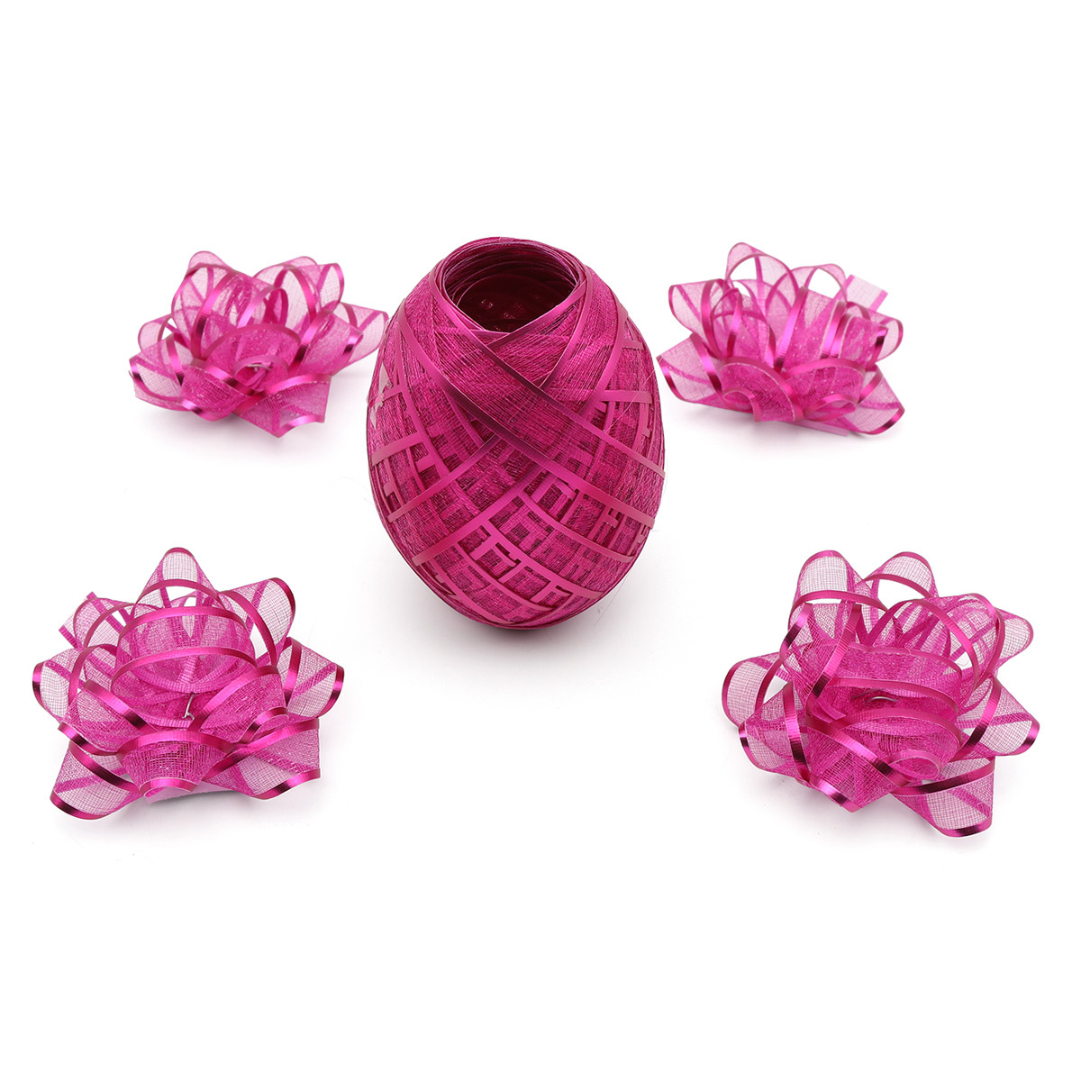 Набор для упаковки: лента 10 мм, 10 м + 4 бантика, AR414, фуксия