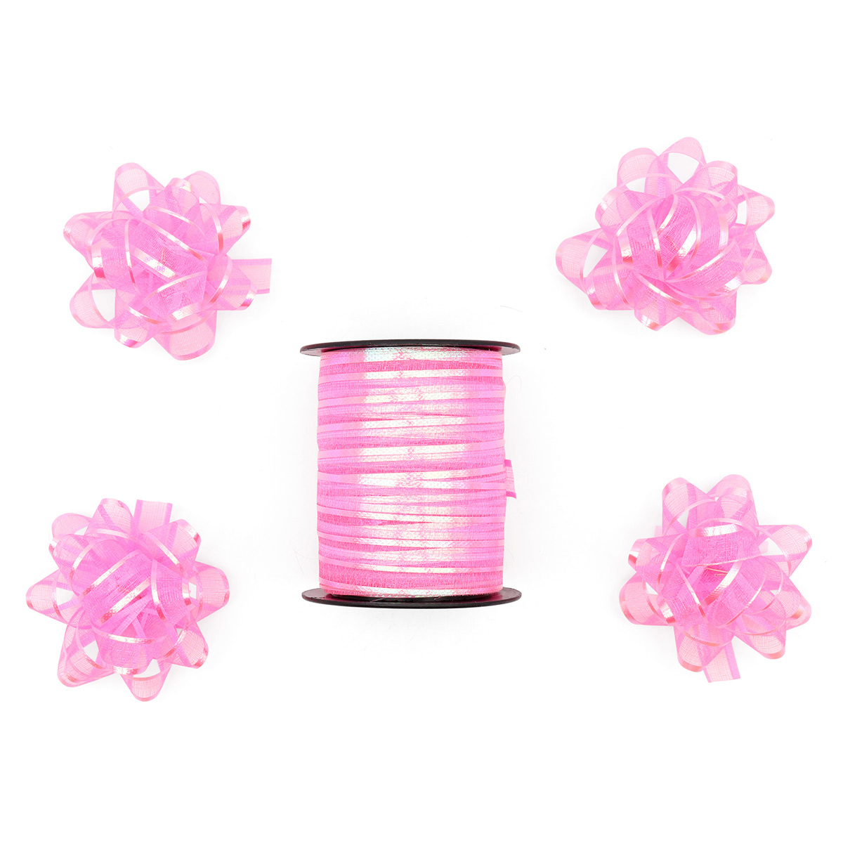 Набор для упаковки: лента 10 мм, 10 м + 4 бантика, AR415, розовый