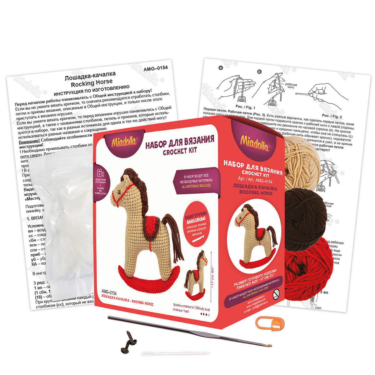 Набор для вязания игрушки Miadolla AMG-0154, Лошадка-качалка, 17 см