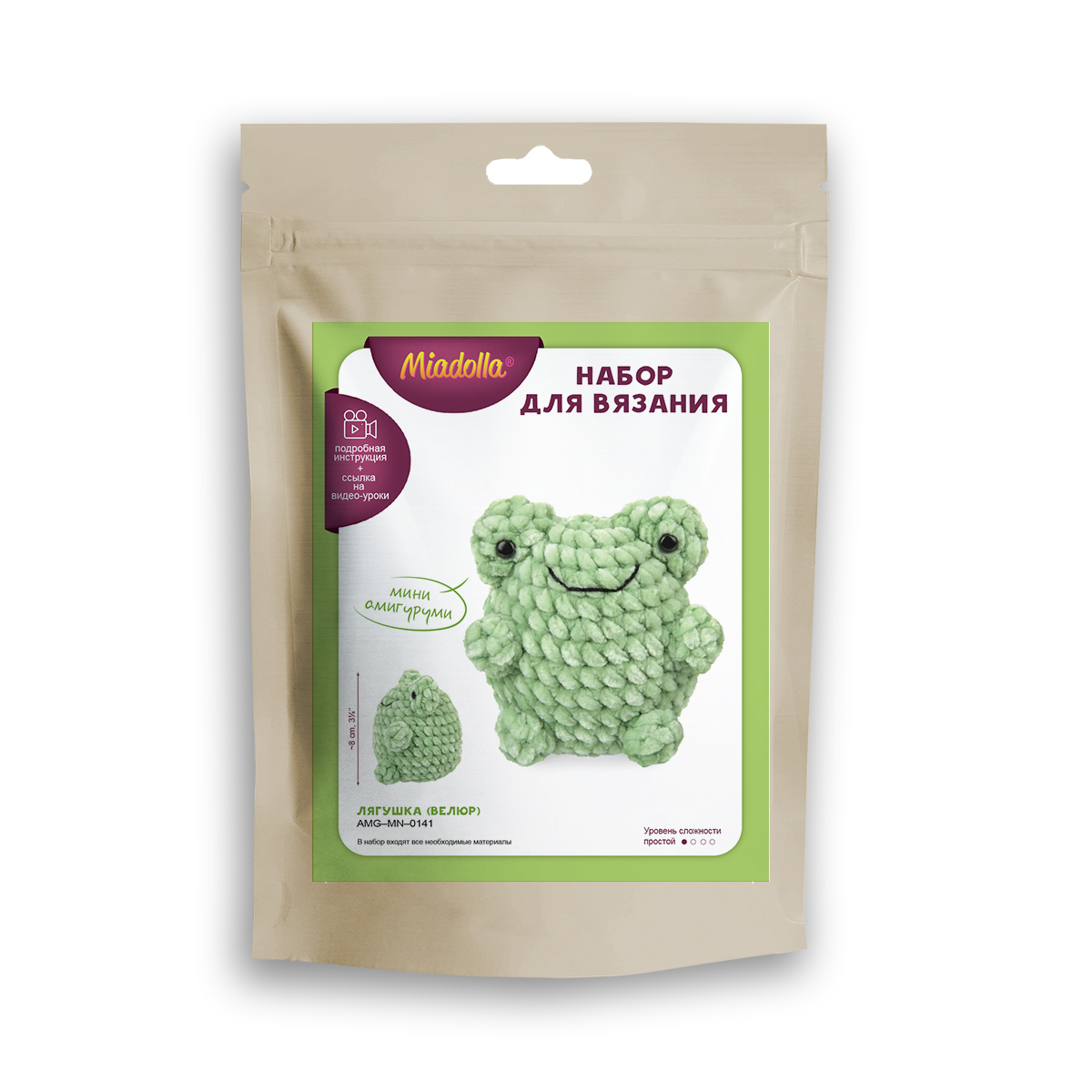 Набор для вязания игрушки Miadolla AMG-MN-0141, Лягушка (велюр), 8 см