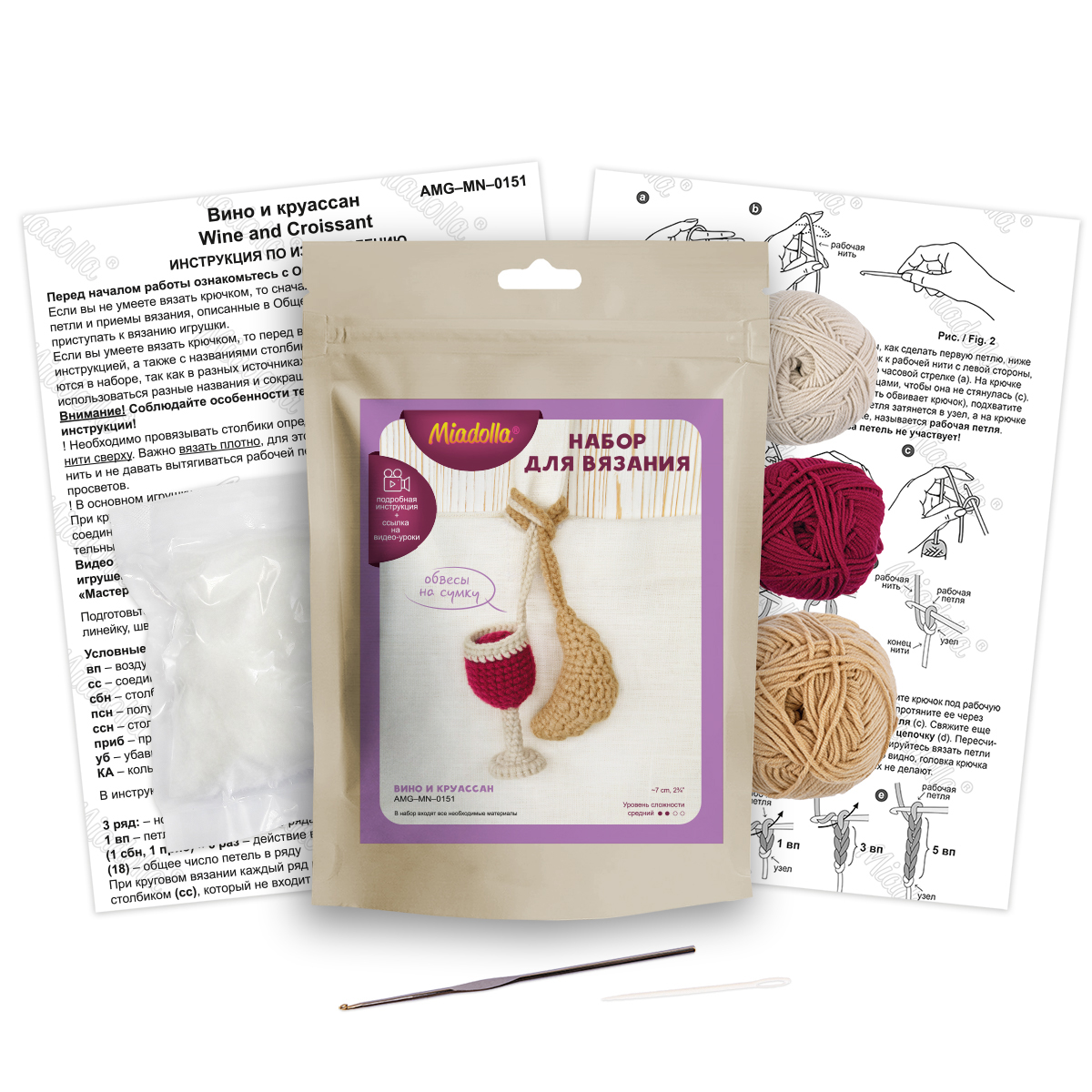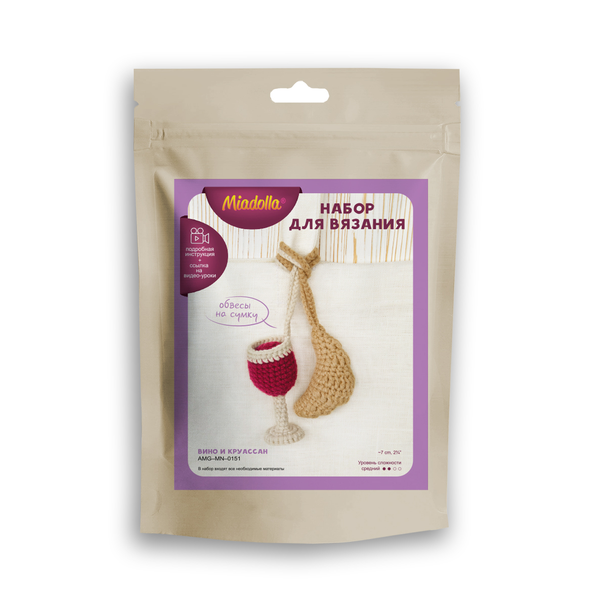 Набор для вязания игрушки Miadolla AMG-MN-0151, Вино и круассан, 7 см