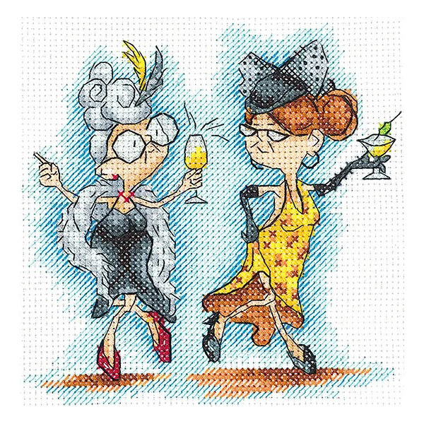 Набор для вышивания нитками Сделай своими руками, Бабушки на вечеринке 12х12,5 см