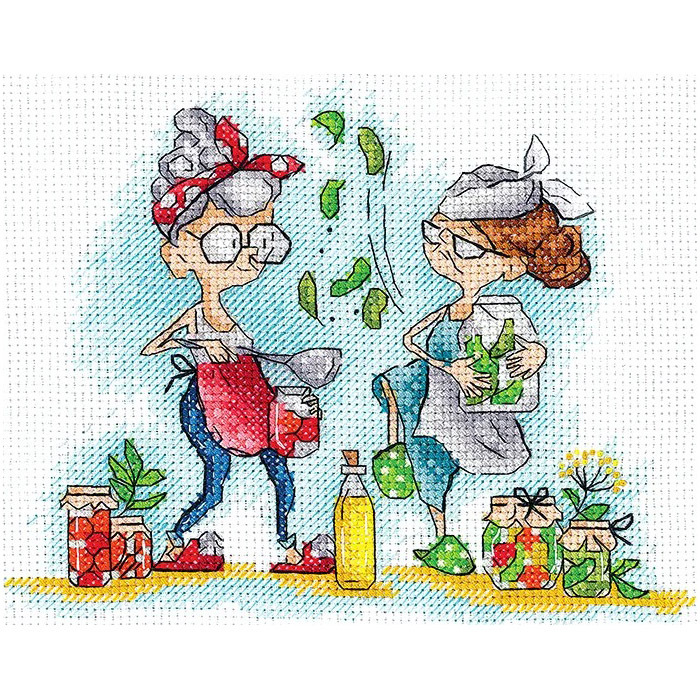 Чтобы вышить сюжет 'Бабушки с солениями', не потребуются особые навыки – достаточно проявить терпение и аккуратность. Точно следуйте схеме и инструкции, выкладывайте аккуратные крестики, и у вас получится вышивка, которая издалека напоминает настоящий рисунок. Отдельные штрихи в технике 'бэкстич' придадут работе завершенный вид. Готовую вышивку лучше всего оформить в багетной мастерской, чтобы она надолго сохранила первоначальный вид. Набор укомплектован канвой Aida 14 каунта – она прекрасно подходит для схем с подробной детализацией, но при этом позволяет выкладывать достаточно крупные стежки. При работе с такой канвой, скорее всего, не потребуется увеличительное стекло. Совет: если вам не хватает опыта, сделайте разметку канвы, ориентируясь по схеме. Разметка поможет вам быстрее закончить вышивку и избежать возможных ошибок. Позаботьтесь о правильном освещении, чтобы снизить нагрузку на зрение. В наборе: канва Aida 14 ct белая, хлопковое мулине, игла, цветная символьная схема, инструкция. Количество цветов: 28.