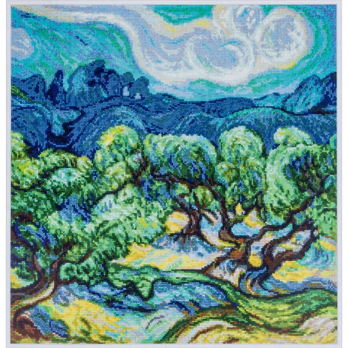 Набор для вышивания нитками Чудесная игла, Оливковые деревья 40х40 см