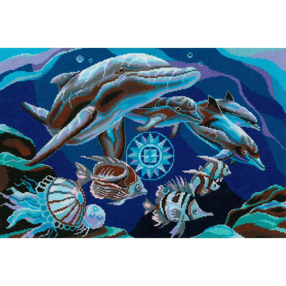 Набор для вышивания крестом Нитекс А-0009, Дельфины 42х27 см