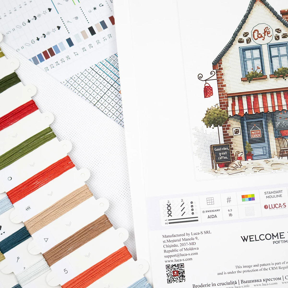Набор для вышивания нитками Luca-S B1427, Добро пожаловать в кафе!, 18х20см