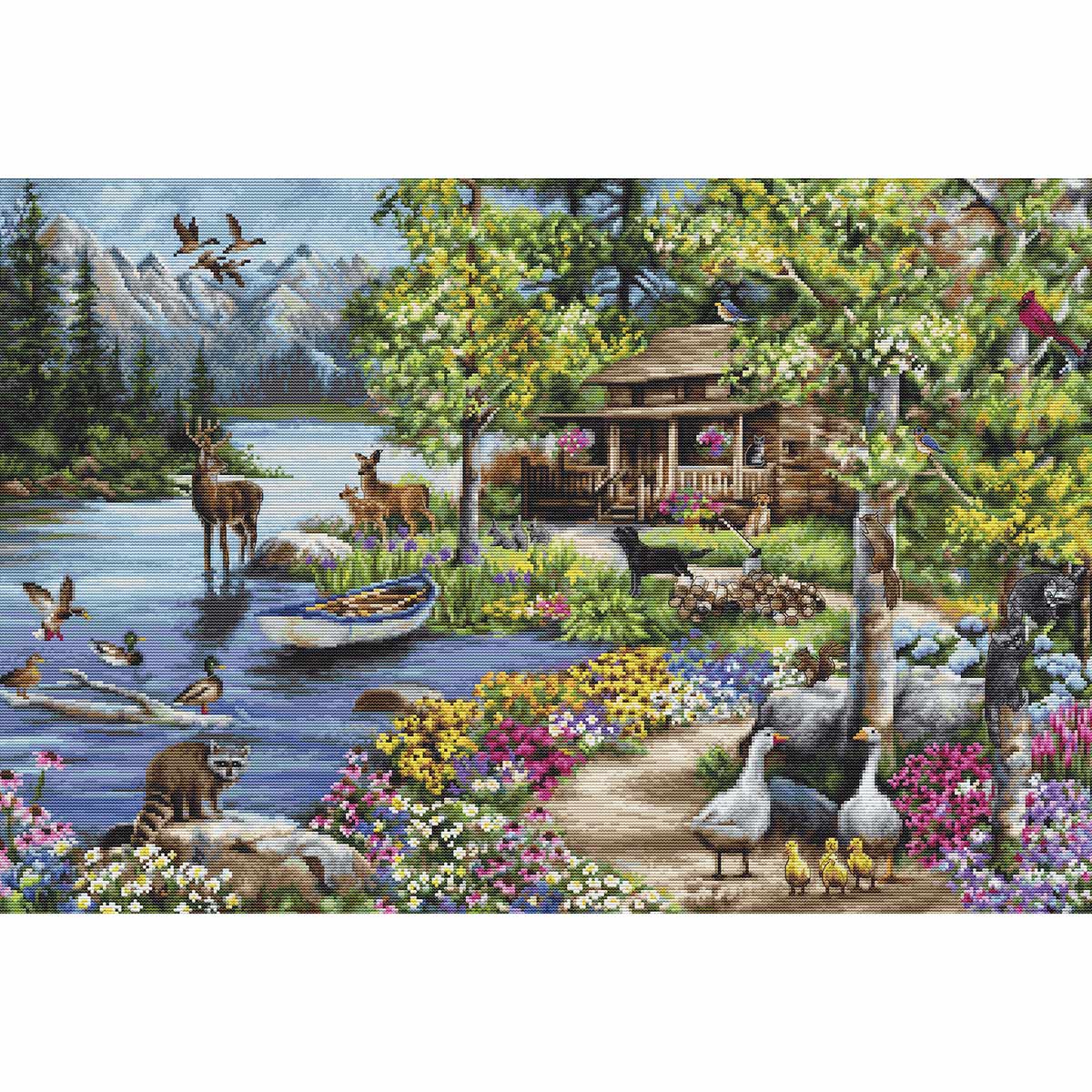 Набор для вышивания нитками Luca-S B2410, Дом Шале у озера, 51х34см
