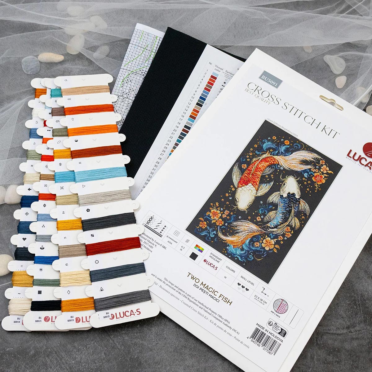 Набор для вышивания нитками Luca-S BU5091, Две Волшебные рыбки, 23х38см