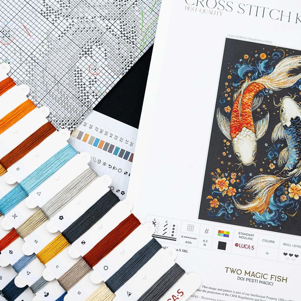 Вышивка крестиком набор Две волшебные рыбки от Luca-S – настоящее путешествие в мир волшебства и творческого самовыражения. Перед вами завораживающая картина, которая постепенно оживает под вашими умелыми руками. Каждый стежок, каждый узелок – это маленький шаг к созданию уникального полотна, которое станет не только украшением вашего дома, но и хранителем теплых воспоминаний о часах, проведенных за увлекательным занятием. Готовая вышивка символизирует любовь, баланс и мистическую красоту водного мира. Набор для вышивания Две волшебные рыбки – это прекрасный подарок для тех, кто ценит ручную работу, кто ищет умиротворения в творчестве и наслаждается красотой тонких деталей. Набор для вышивания крестиком - идеальный презент любителям вышивания, друзьям, маме, подруге на день рождения, Новый год. Luca-S позаботились о вашем комфорте, предоставив все необходимые материалы высочайшего качества. Нитки ярких и насыщенных цветов отличаются прочностью и износостойкостью, чтобы вы могли наслаждаться результатом своего труда долгие годы. Набор снабжён удобным картонным органайзером для ниток, где каждая нить аккуратно размещена и подписана, соответствуя обозначениям на схеме. Забудьте о сложностях и неудобствах. С набором Две волшебные рыбки от Luca-S вы получите всё необходимое для создания настоящего шедевра. Наслаждайтесь процессом, почувствуйте радость от творчества, и результат вашей работы будет долго радовать вас и ваших близких. Это не просто вышивка крестиком, это вложение души и времени, это история, рассказанная стежок за стежком.