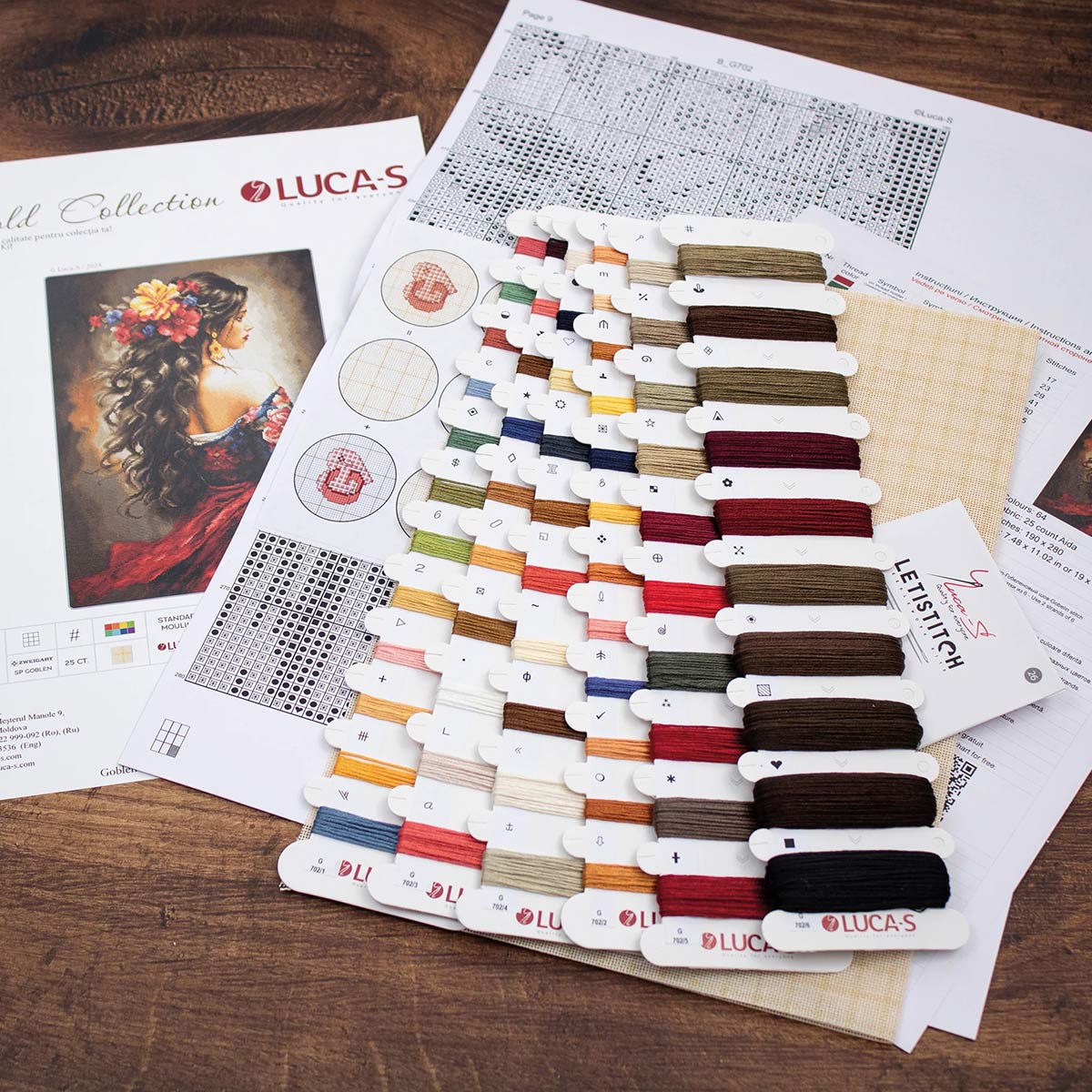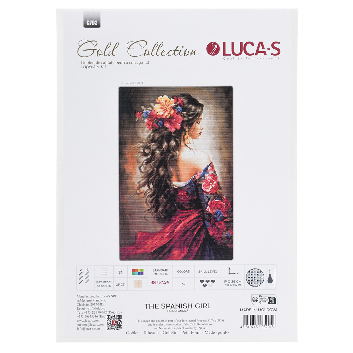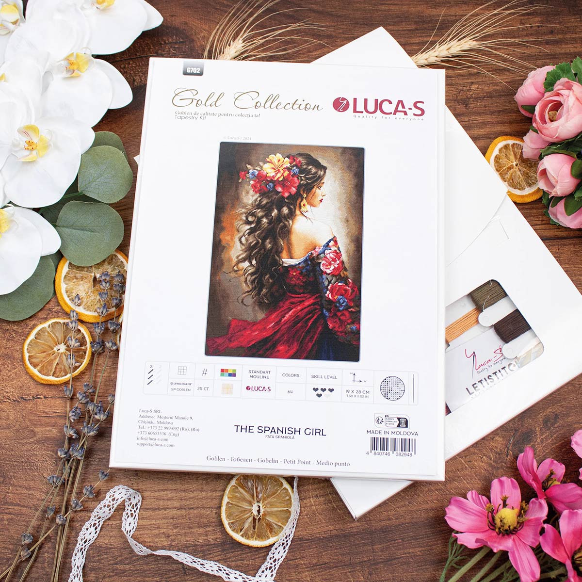 Набор для вышивания нитками Luca-S G702, гобелен Испанская девушка, 19х28см