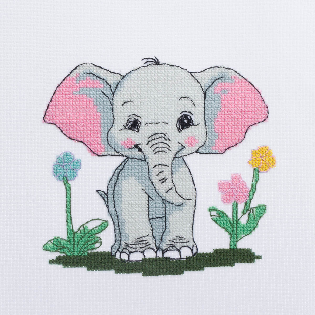 Вышивка крестом Hobby&Pro Kids 273, Слонёнок в цветах 19х18 см